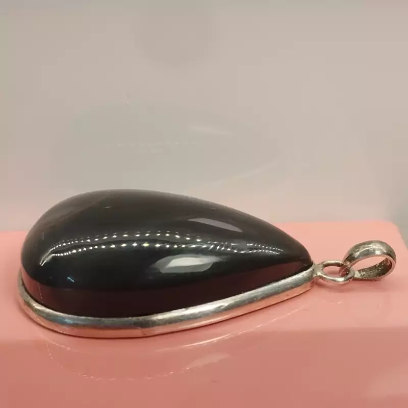 گردن آویز نقره دست ساز عقیق مشکی تراش اشک صددرصد طبیعی با ضمانت مکتوب اصالت،برند دُرسیم