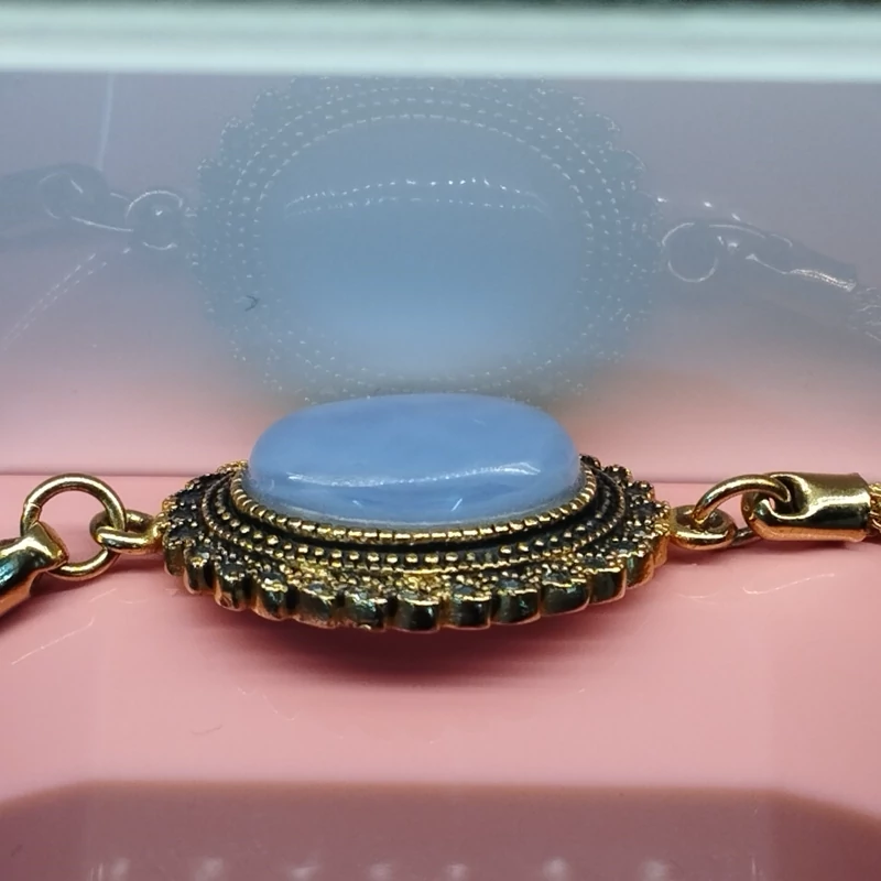 دستبند استیل رنگ ثابت با آبکاری زرد و نگین مارکازیت، عقیق آبی صددرصد طبیعی با ضمانت مکتوب اصالت،برند دُرسیم