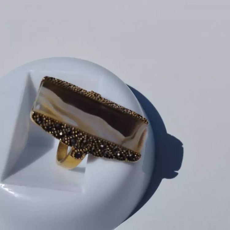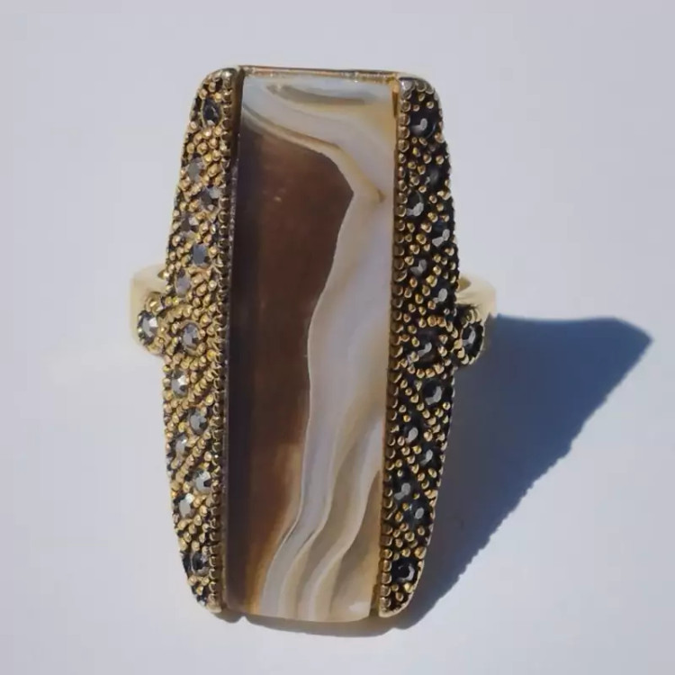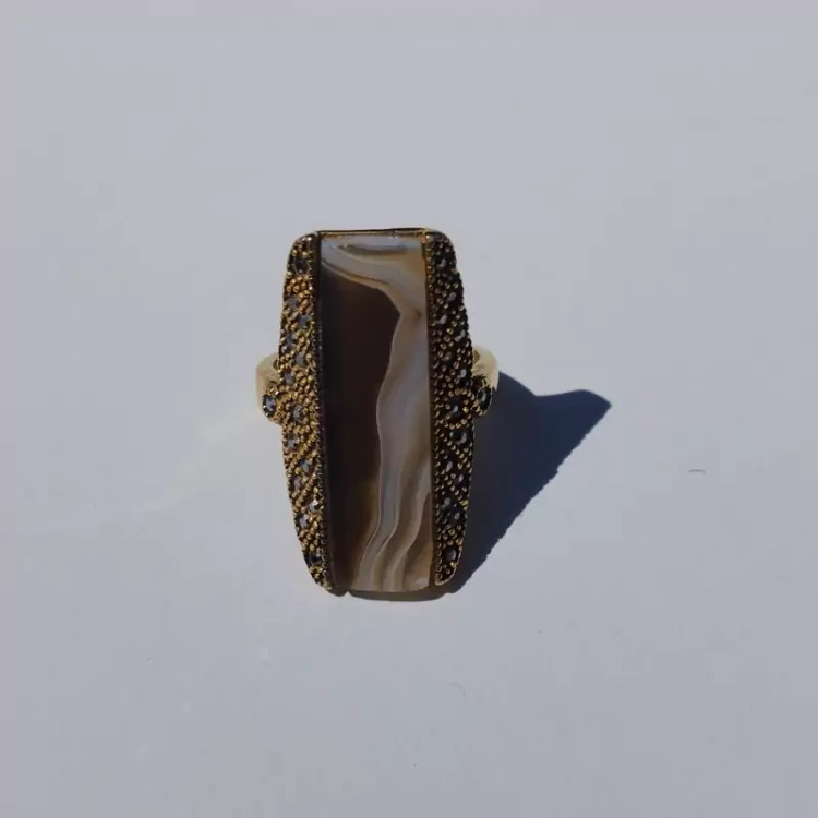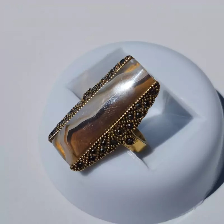 انگشتر زنانه استیل رنگ ثابت با عقیق سلیمانی طبیعی و معدنی برند دُرسیم