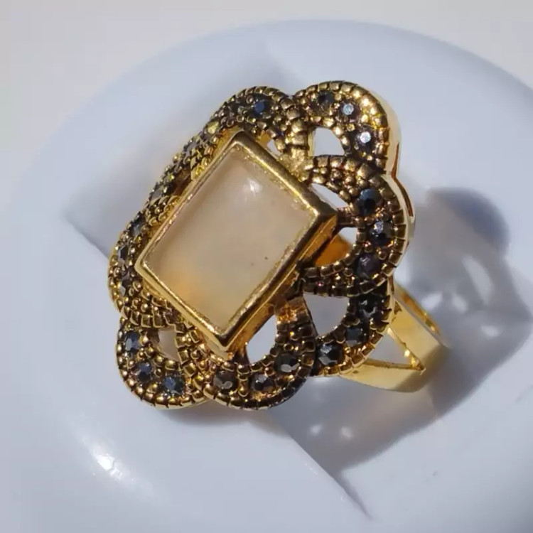 انگشتر زنانه استیل رنگ ثابت با عقیق زرد بسیار شفاف (نباتی) برند دُرسیم