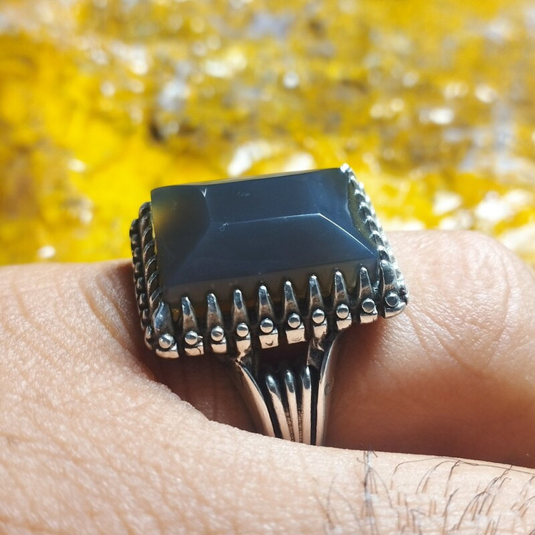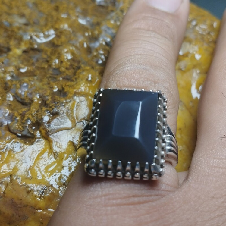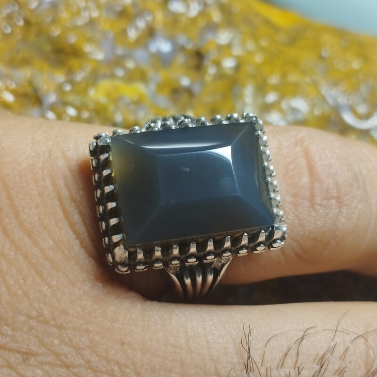 🟡 #انگشتر #مردانه 💎 #عقیقِ طبیعی ذغال سنگی (مشکی روشن) 🌸🌹🌼💐 ✅ فرم : #نقره عیار ۹۲۵ 📏 سایز ۶۲