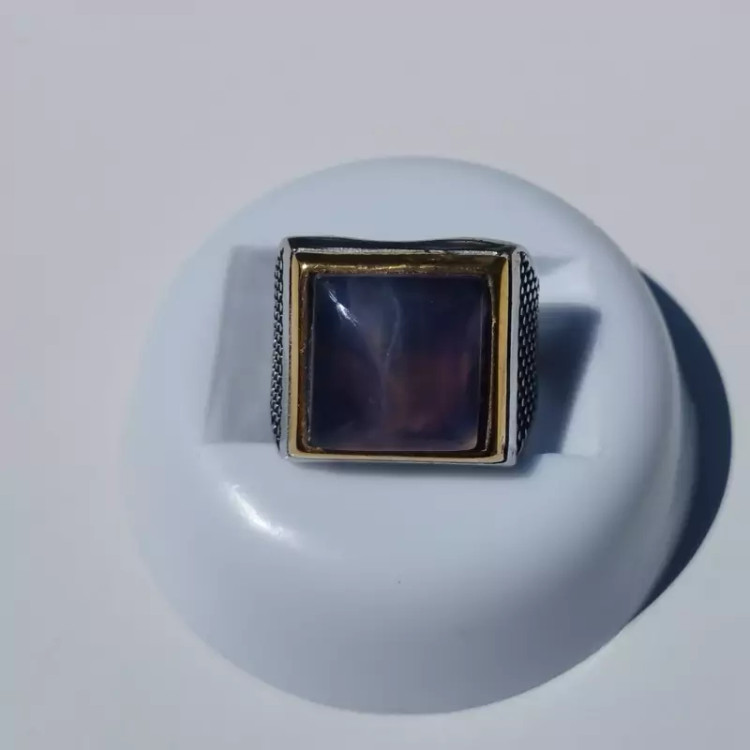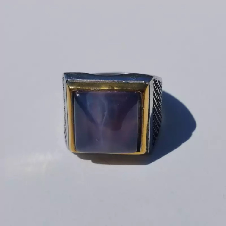 انگشتر استیل رنگ ثابت مردانه عقیق سونی طبیعی و معدنی برند درسیم