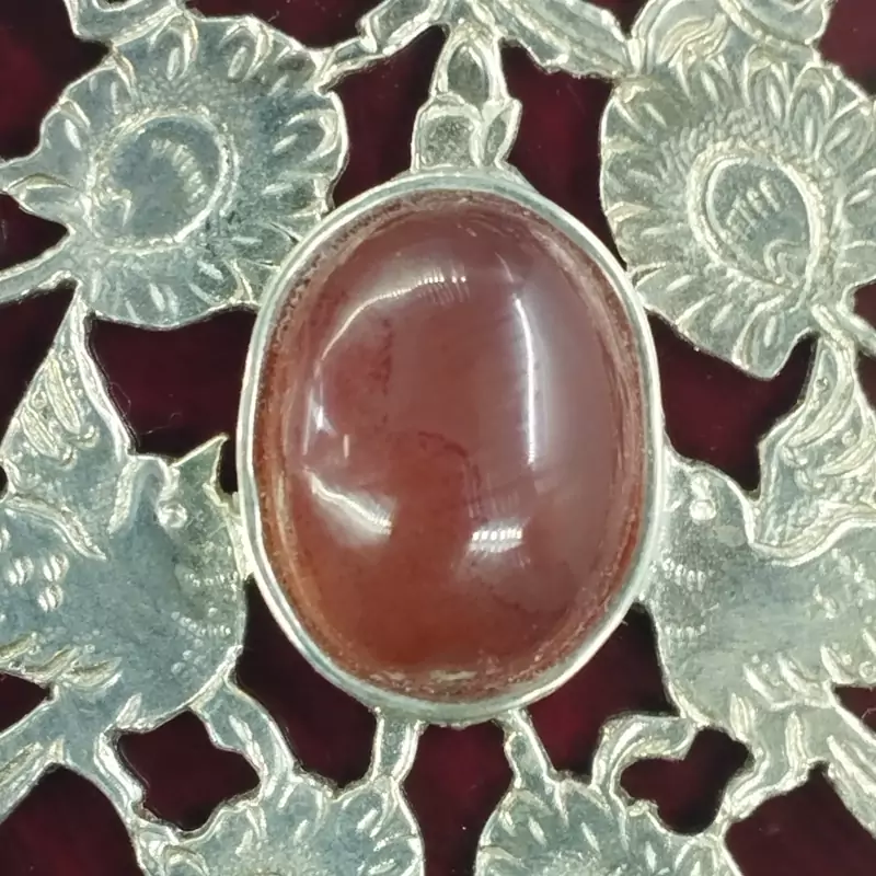 فرم نقره عیار استاندارد ۹۲۵ قلمزنی طرح گل و مرغ آبکاری رادیوم عقیق سرخ طبیعی و معدنی عقیق صددرصد طبیعی و معدنی میباشد در صورت تمایل ضمانت نامه مکتوب برای اصالت جنس و رنگ عقیق صادر میشود تضمین میکنیم که عقیق وارداتی،ازمایشگاهی،شیشه و .... نبوده بلکه عقیق طبیعی و معدنی است و رنگ آن نیز طبیعی است(مانند بسیاری از عقیق های بازار رنگ نگین تزریقی نیست) تراش نگین توسط هنرمندان مجموعه تولیدی درسیم انجام گرفته است