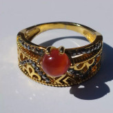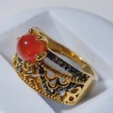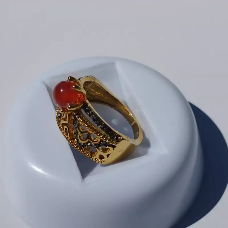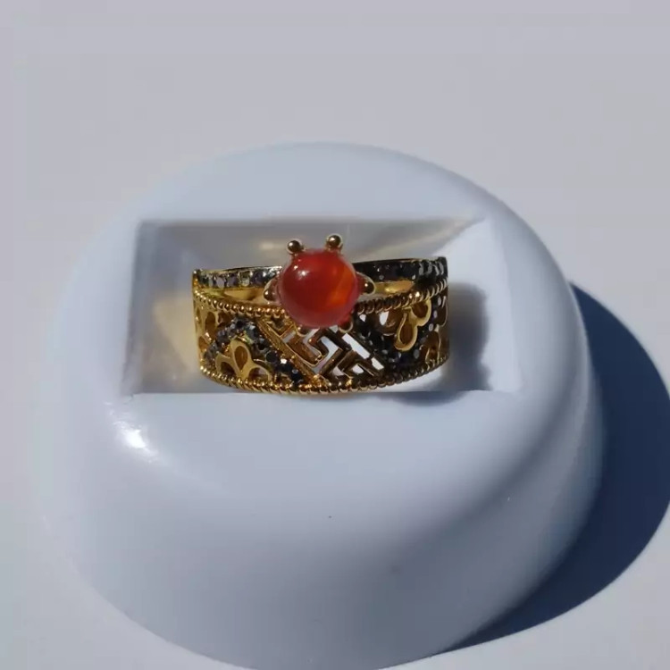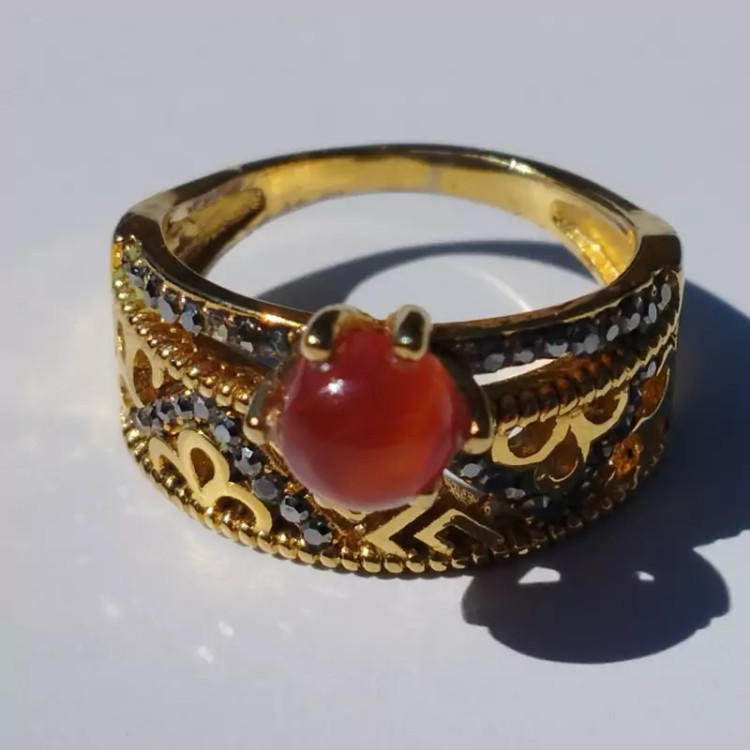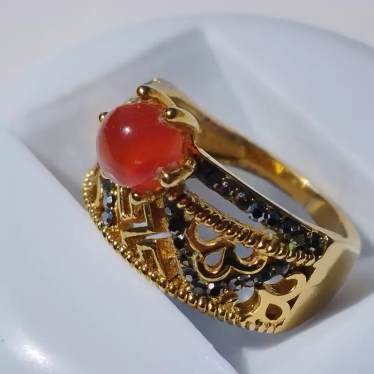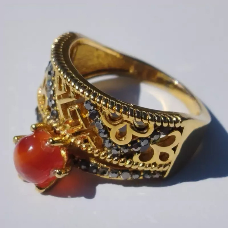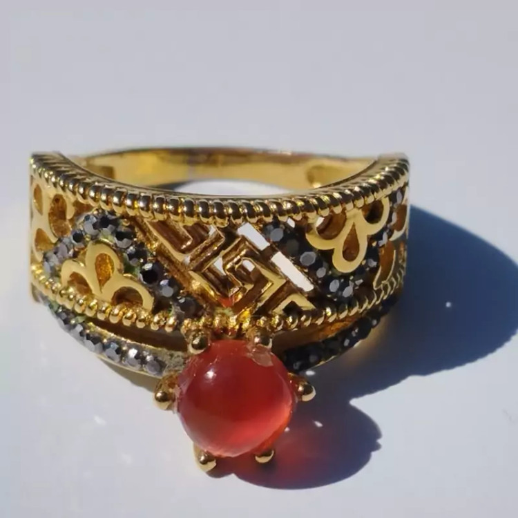 انگشتر استیل رنگ ثابت زنانه با نگین های مارکازیت و آبکاری طلا و عقیق سرخ طبیعی و معدنی برند دُرسیم