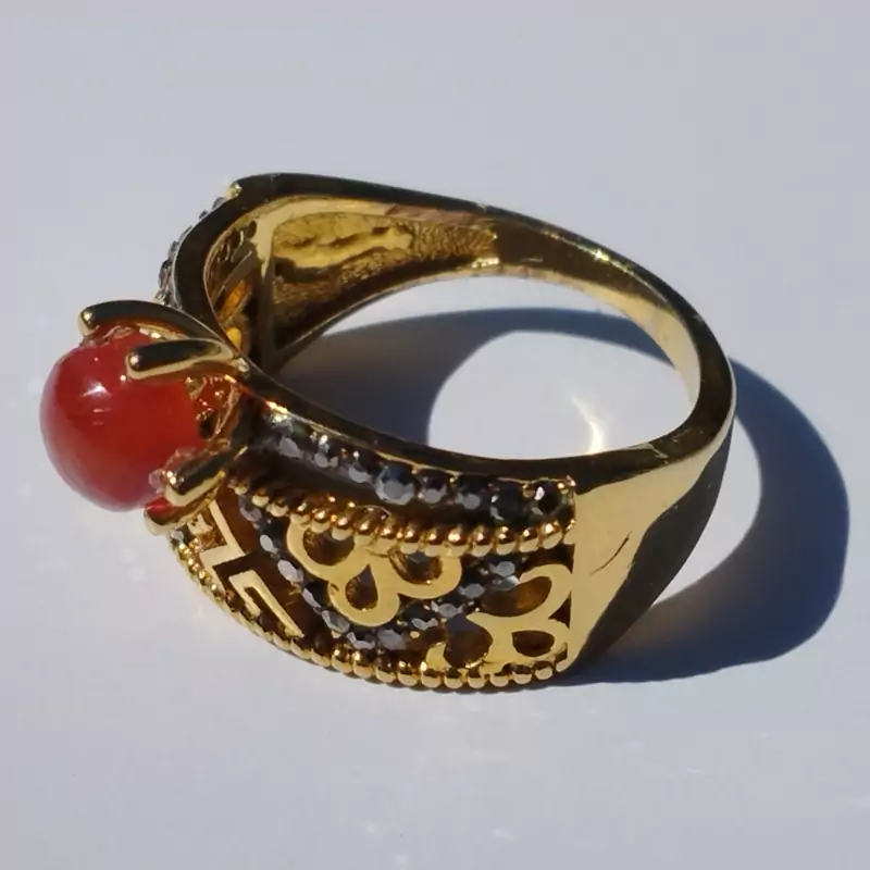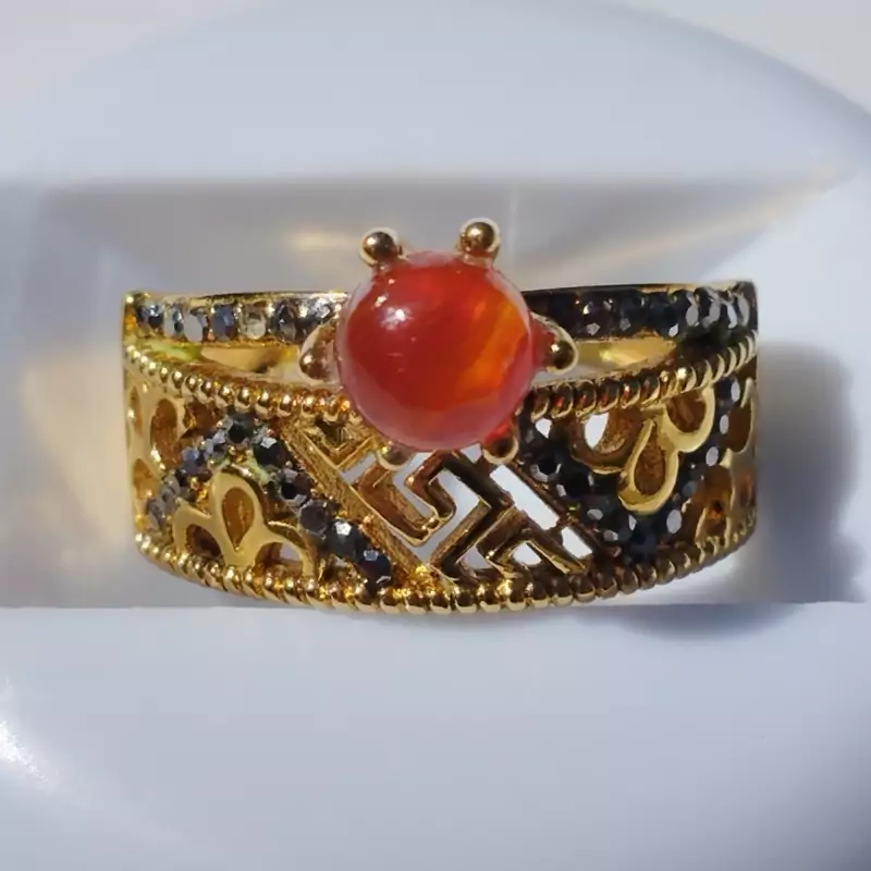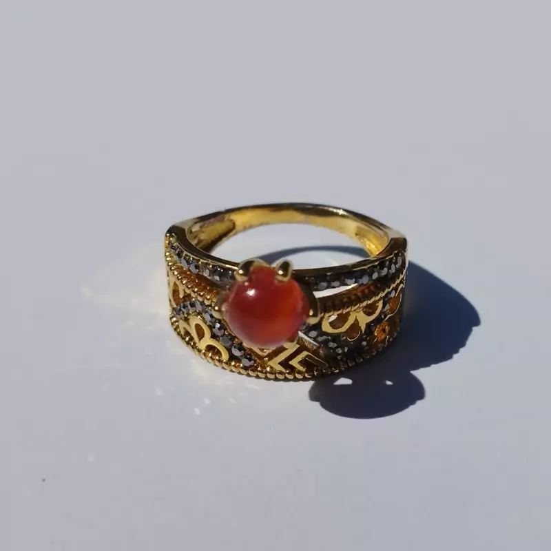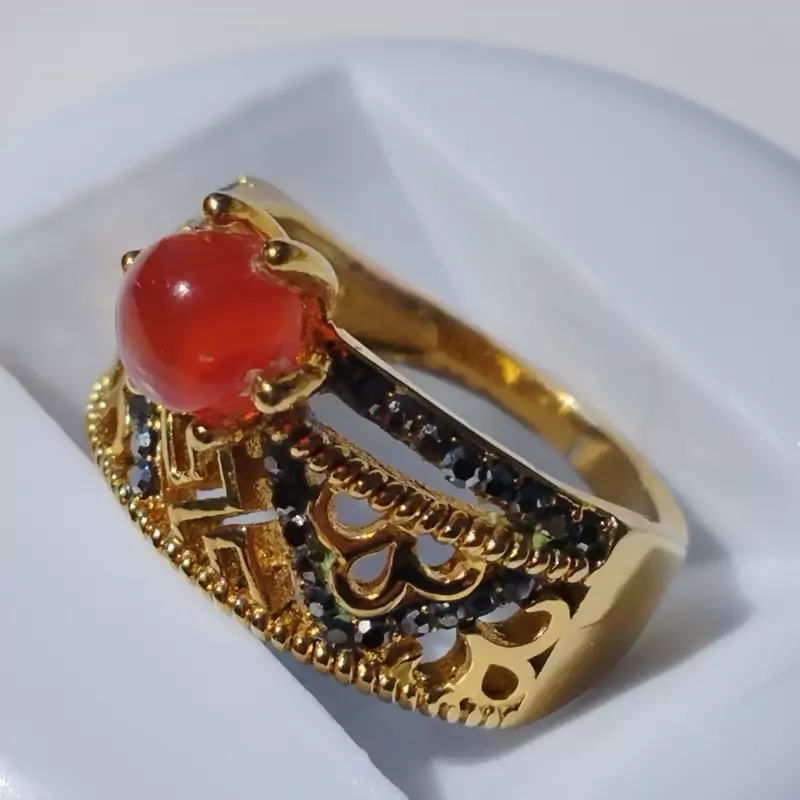 انگشتر استیل رنگ ثابت زنانه با نگین های مارکازیت و آبکاری طلا و عقیق سرخ طبیعی و معدنی برند دُرسیم