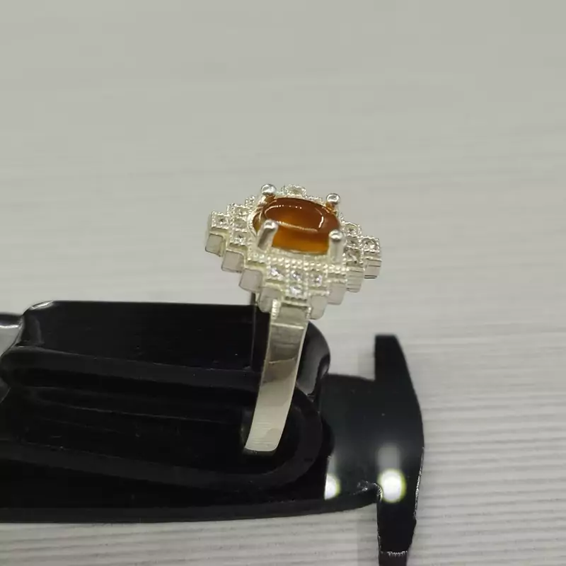 فرم نقره عیار ۹۲۵ عقیق پرتقالی صددرصد طبیعی و معدنی،تراش دست. برای اصالت جنس و رنگ عقیق ضمانت نامه مکتوب صادر میشود