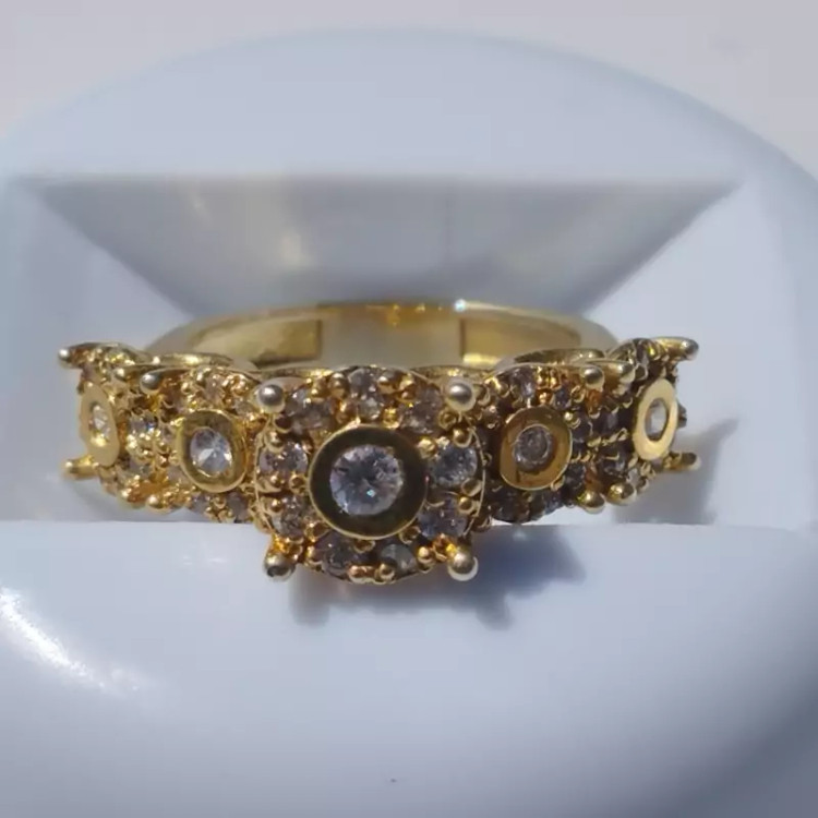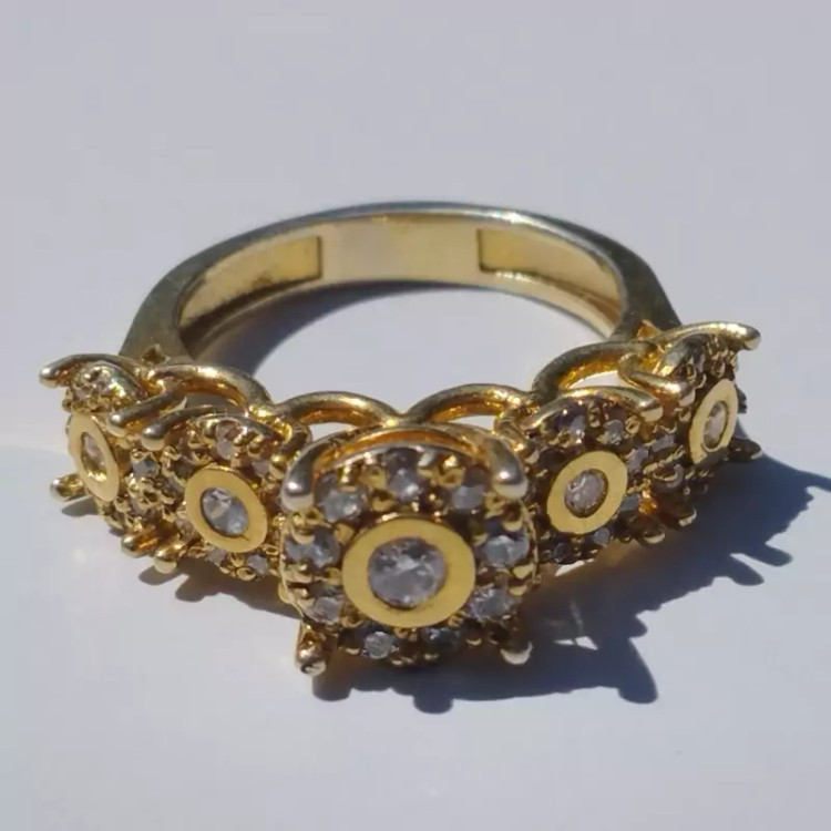 انگشتر نقره زنانه با نگین های اتمی،طرح جواهری و آبکاری طلا برند درسیم