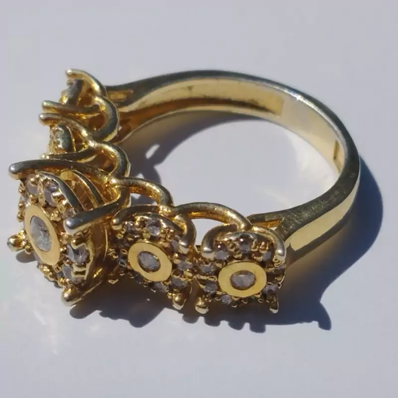 انگشتر نقره زنانه با نگین های اتمی،طرح جواهری و آبکاری طلا برند درسیم