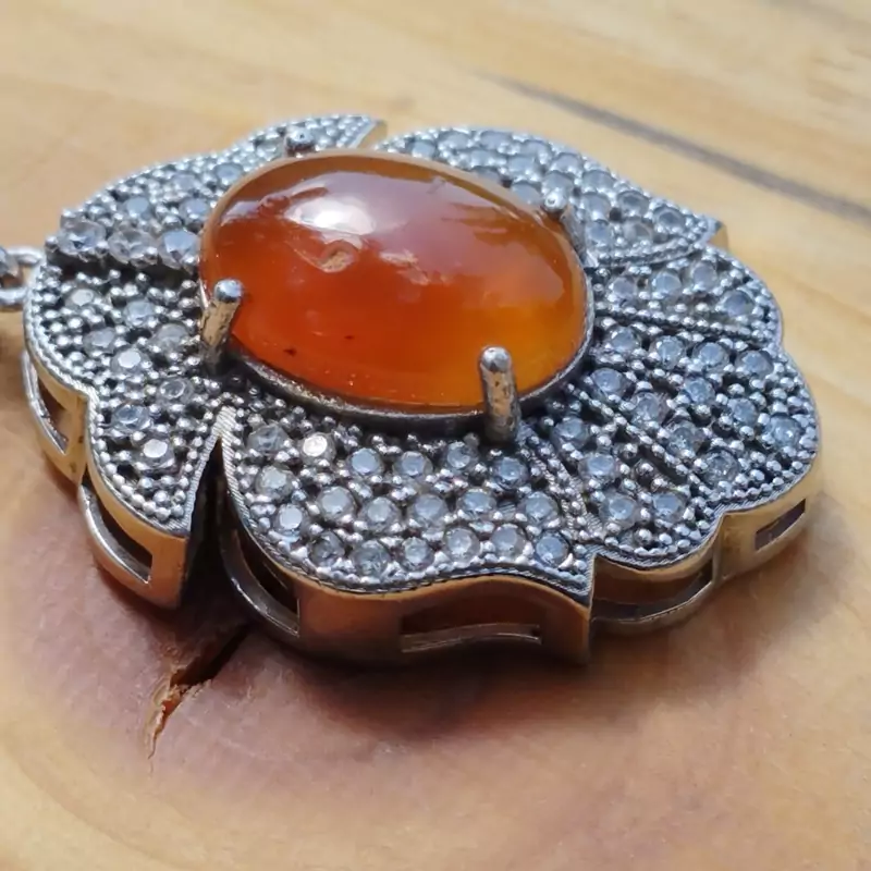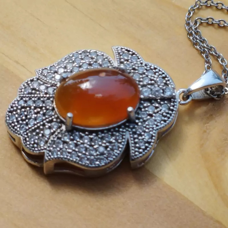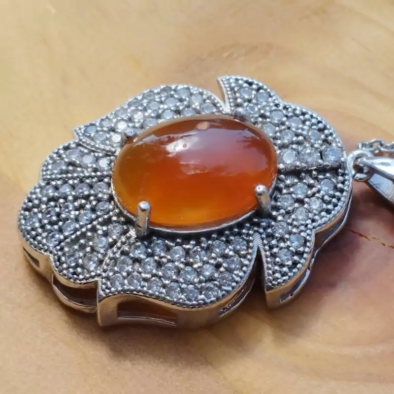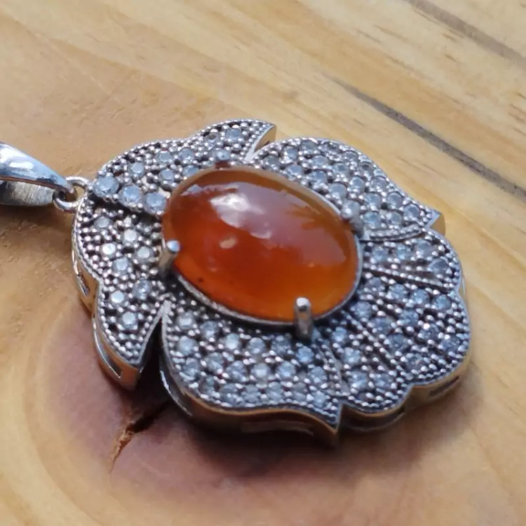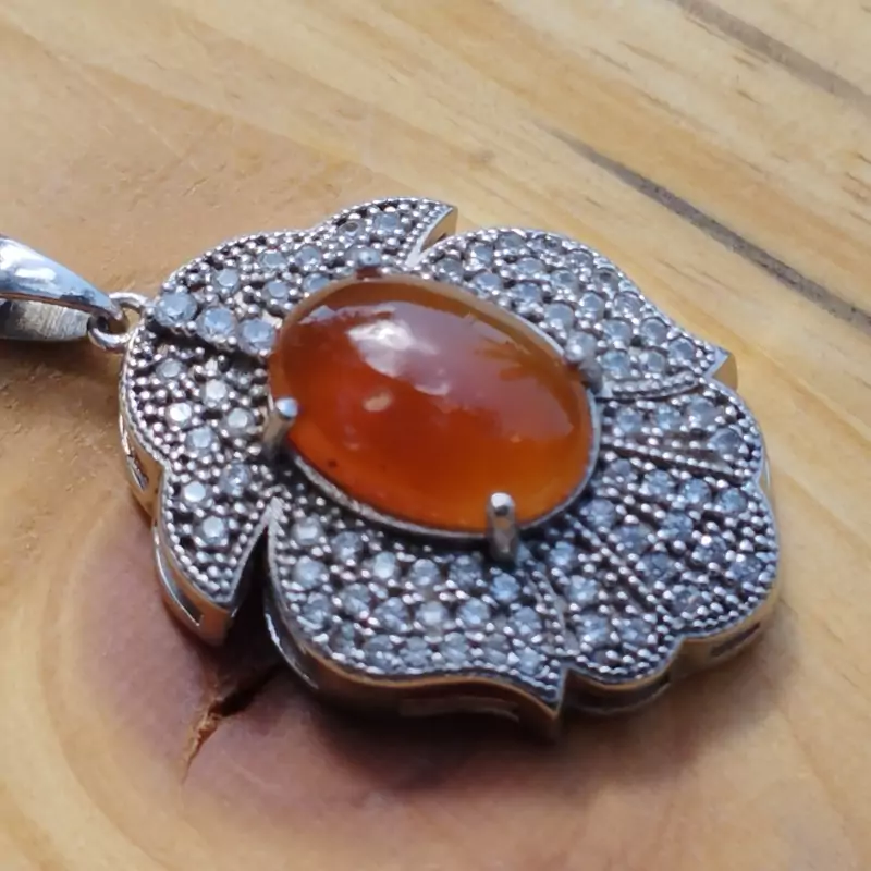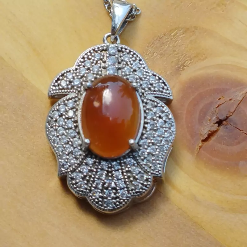 گردن آویز زنانه نقره با عقیق پرتقالی طبیعی و معدنی برند دُرسیم