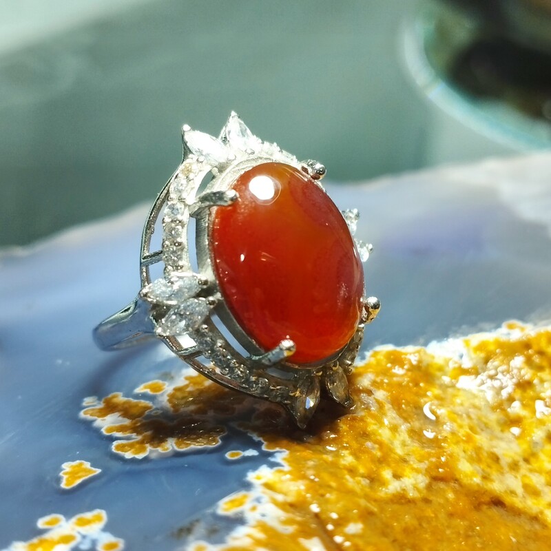 انگشتر نقره زنانه عقیق سرخ آبدار و طبیعی