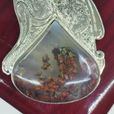 گردن آویز زنانه نقره قلمزنی با عقیق شجر زرشکی طبیعی و معدنی برند دُرسیم