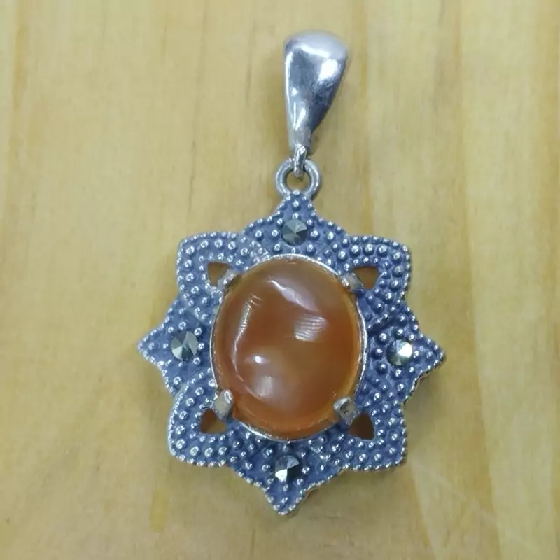 گردن آویز زنانه نقره عقیق زرد عسلی طبیعی و معدنی برند درسیم