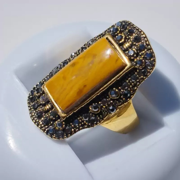 انگشتر زنانه استیل رنگ ثابت با روکش آب طلا و عقیق زرد جاسپر برند دُرسیم