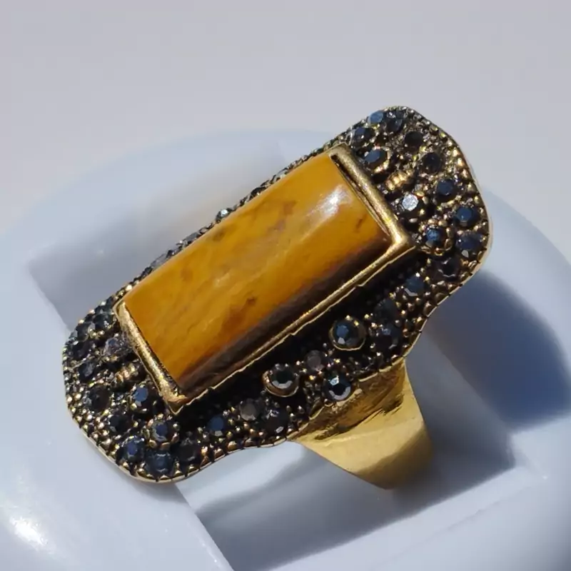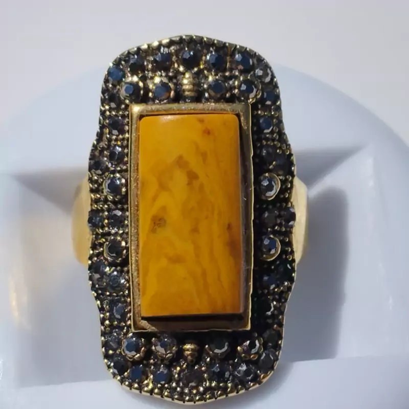 انگشتر زنانه استیل رنگ ثابت با روکش آب طلا و عقیق زرد جاسپر برند دُرسیم