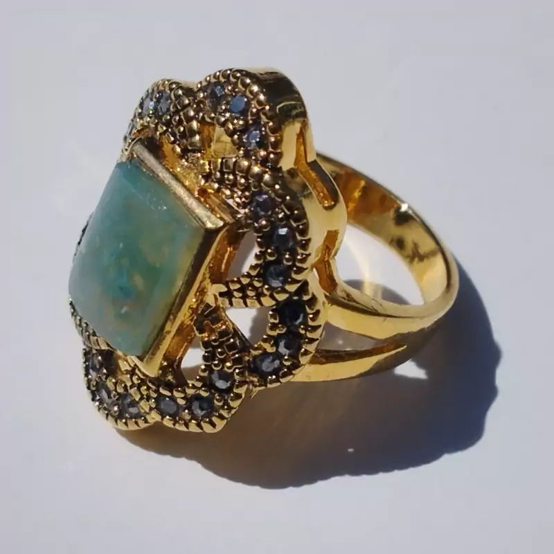 انگشتر زنانه استیل رنگ ثابت با عقیق سبز فیروزه ای تراش مربع کاملا حرفه ای برند دُرسیم