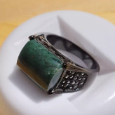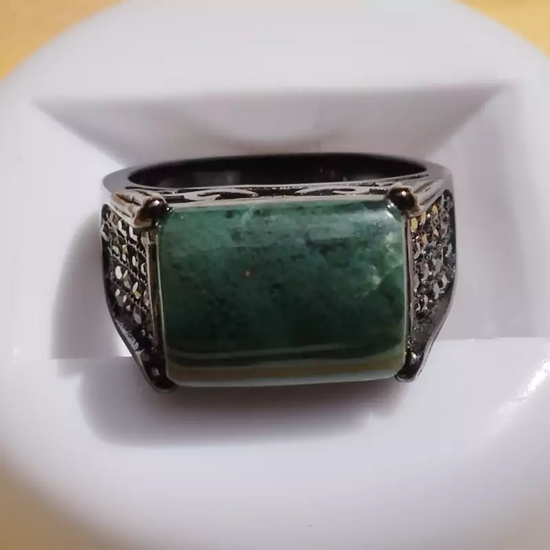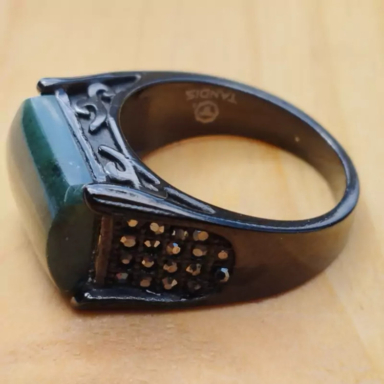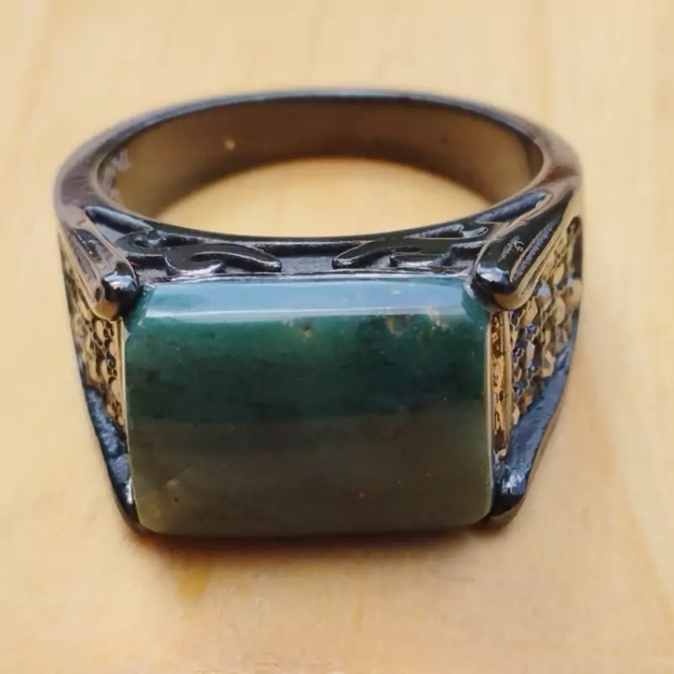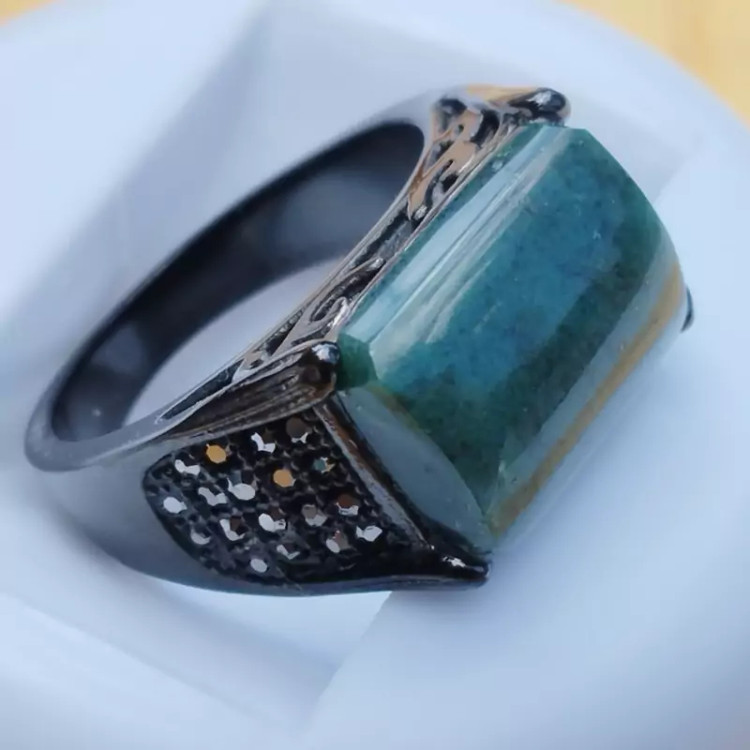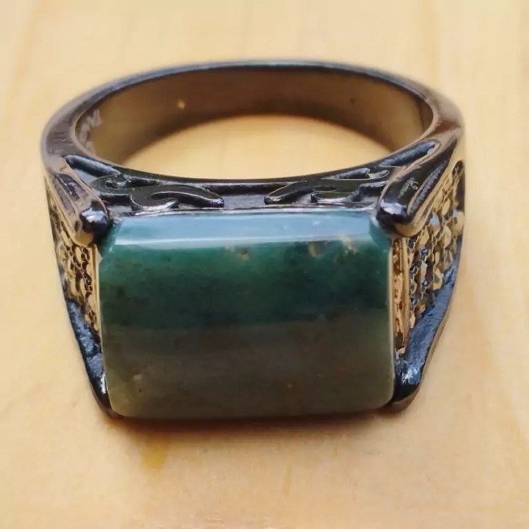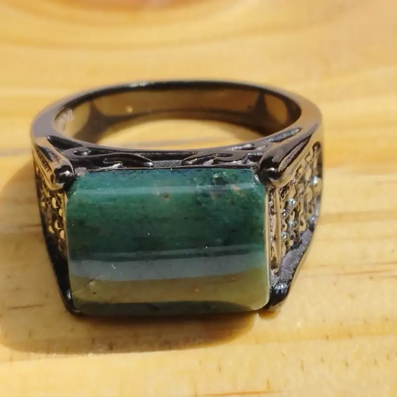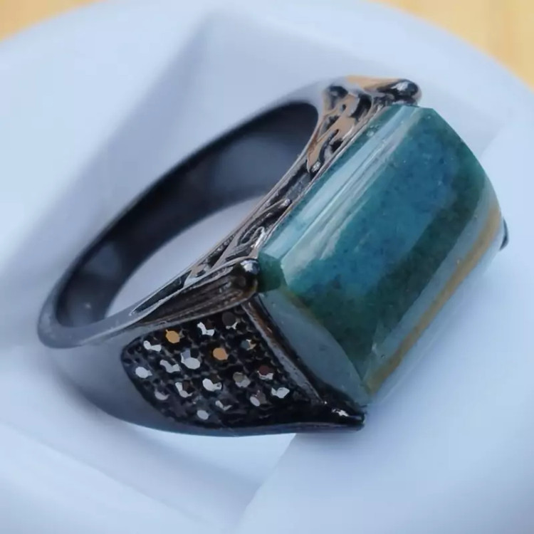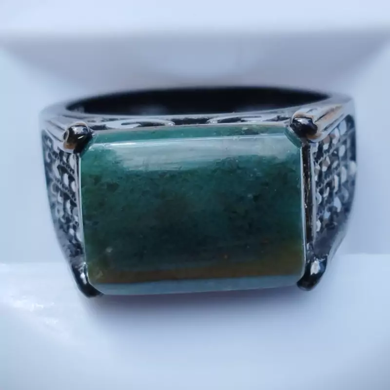 فرم استیل رنگ ثابت مشکی ضد حساسیت عقیق سبز خزه ای تراش مستطیل عقیق صددرصد طبیعی و معدنی میباشد در صورت تمایل ضمانت نامه مکتوب برای اصالت جنس و رنگ عقیق صادر میشود تضمین میکنیم که عقیق وارداتی،ازمایشگاهی،شیشه و .... نبوده بلکه عقیق طبیعی و معدنی است و رنگ آن نیز طبیعی است(مانند بسیاری از عقیق های بازار رنگ نگین تزریقی نیست) تراش نگین توسط هنرمندان مجموعه تولیدی درسیم انجام گرفته است