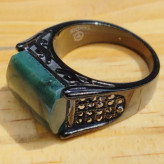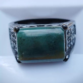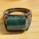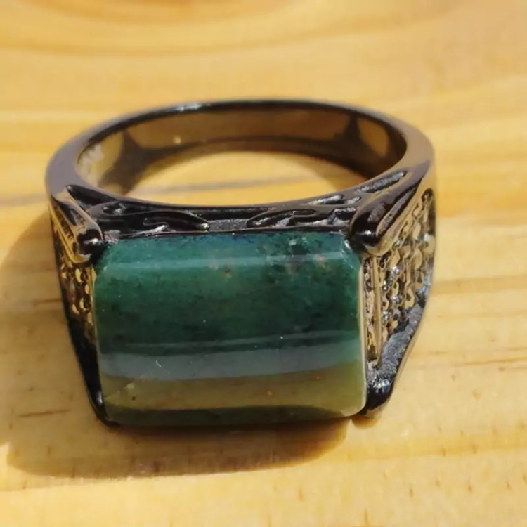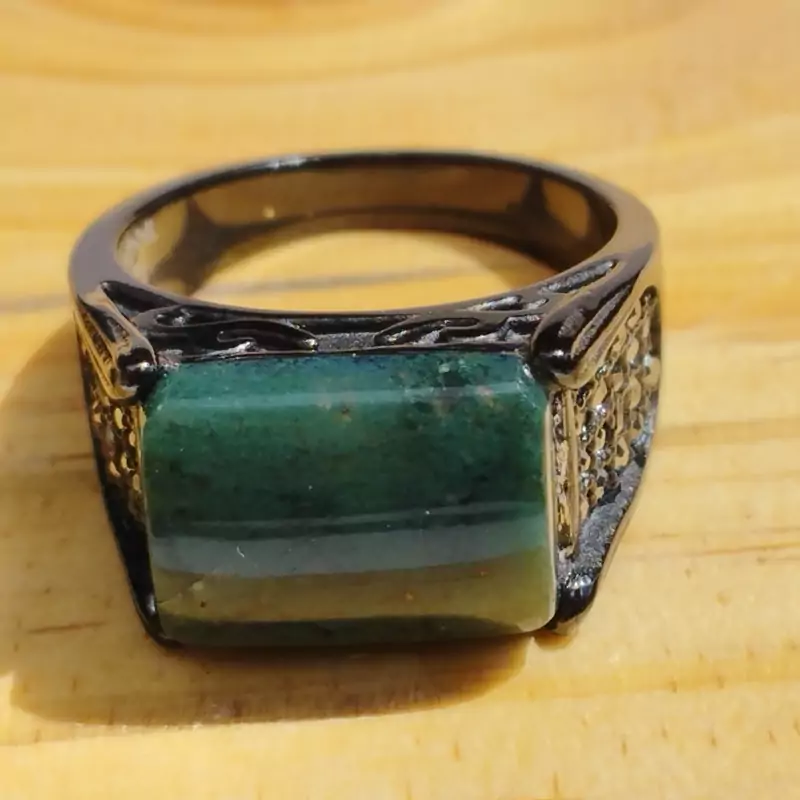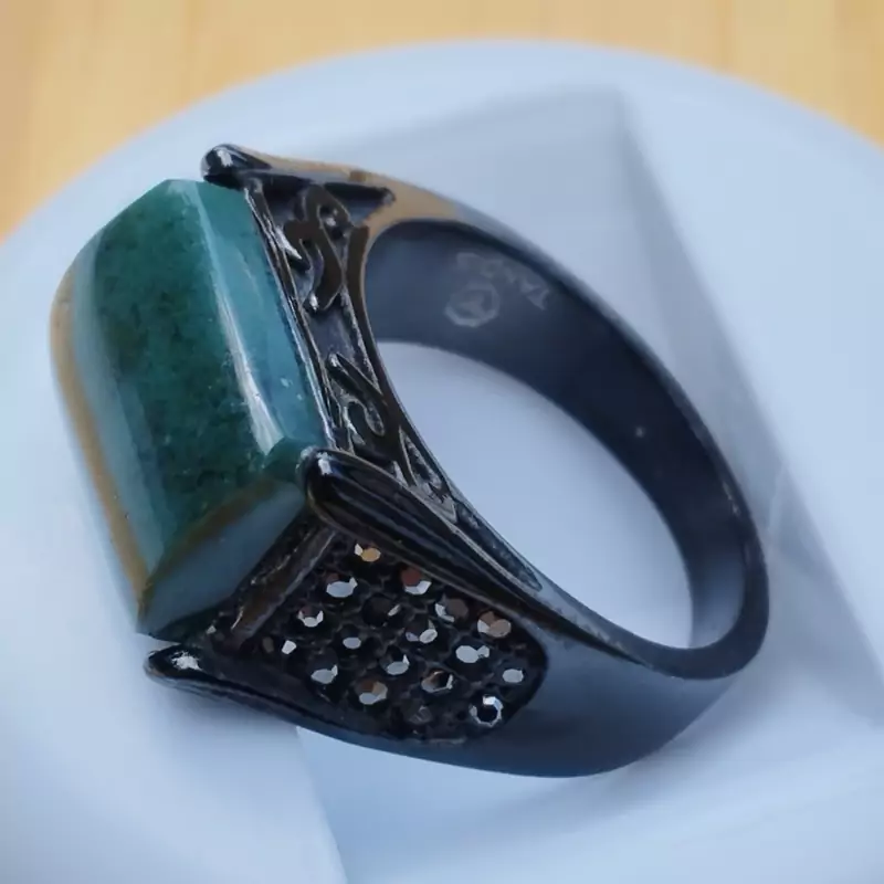 انگشتر مردانه استیل رنگ ثابت مشکی با عقیق سبز خزه ای طبیعی و معدنی