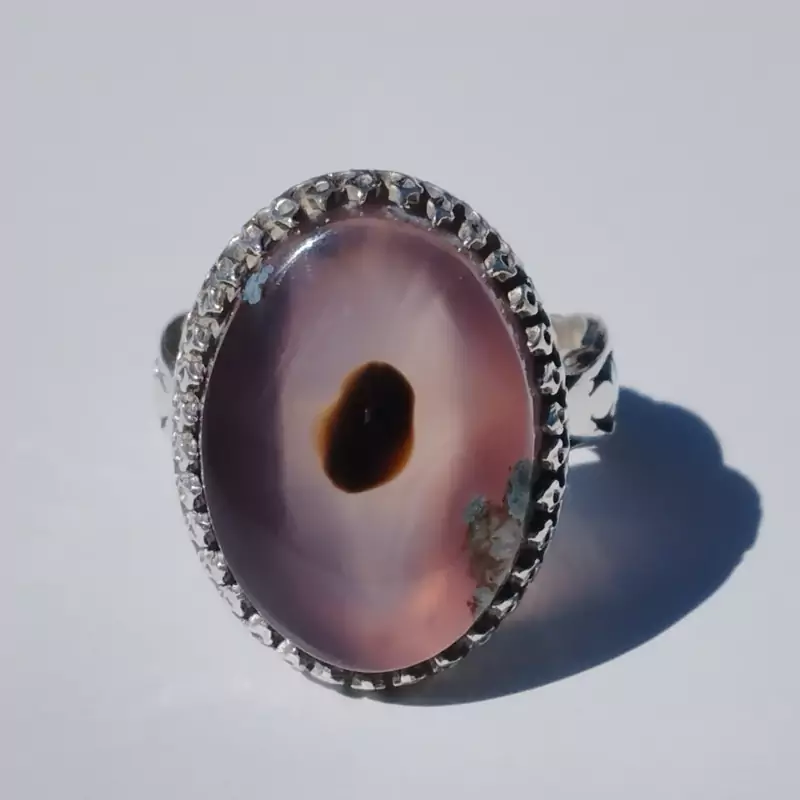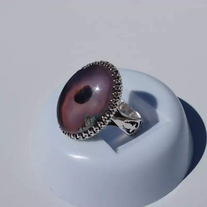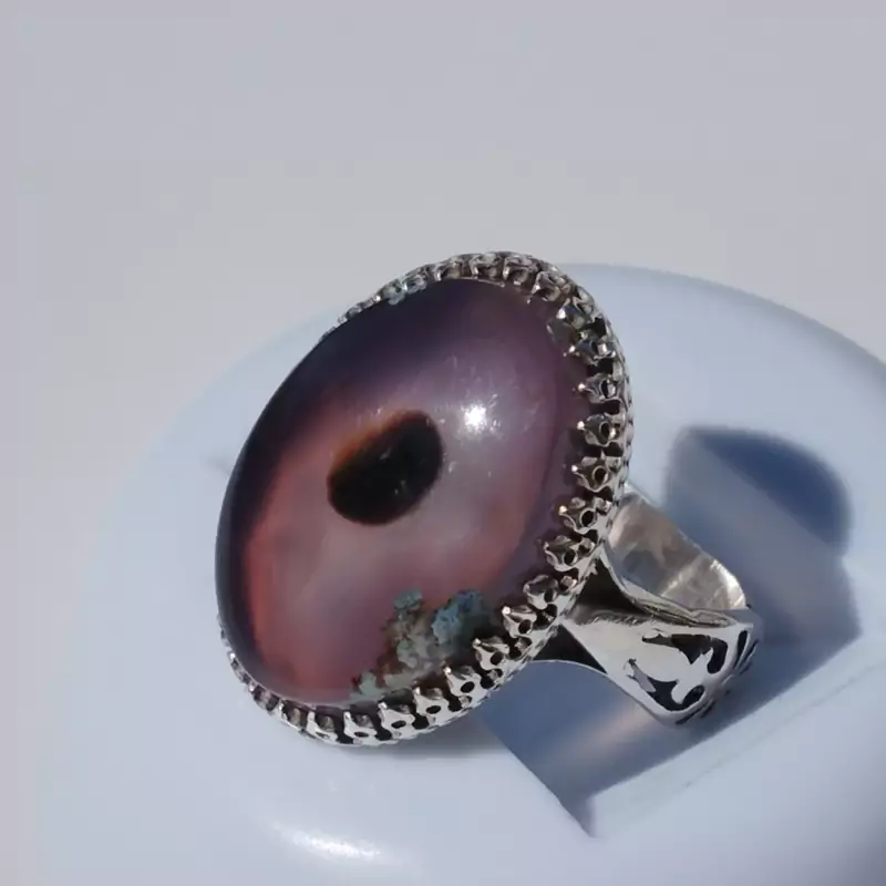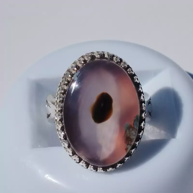 رکاب نقره عیار ۹۲۵ عقیق صددرصد طبیعی و معدنی سونی خالدار ضمانت نامه مکتوب برای اصالت جنس و رنگ عقیق صادر میشود تضمین میکنیم که عقیق وارداتی،ازمایشگاهی،شیشه و .... نبوده بلکه عقیق طبیعی و معدنی بوده و رنگ آن نیز طبیعی است(مانند بسیاری از عقیق های بازار رنگ تزریقی نیست)