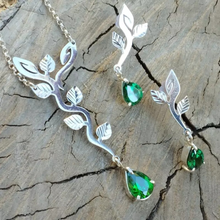 🟡 #نیمست #زنانه 💎 # نگین سبز اتمی ✅ فرم : #نقره عیار ۹۲۵ برش لیزری خاص و کم نظیر