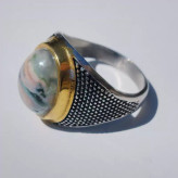 انگشتر مردانه استیل رنگ ثابت عقیق جاسپر آب رنگی بسیار زیبا