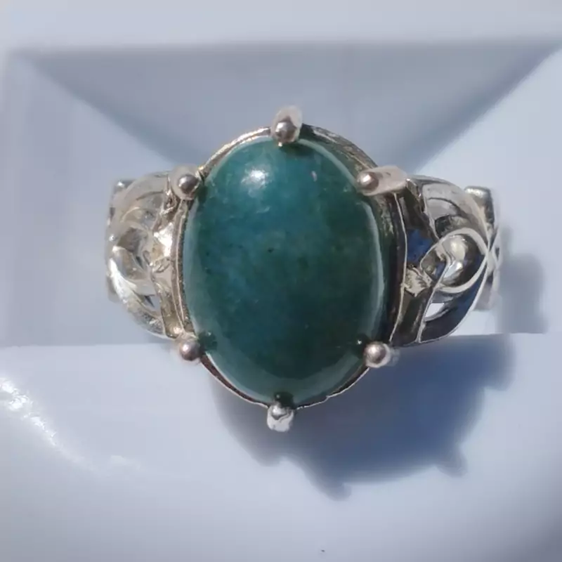 انگشتر زنانه نقره عقیق سبز بسیار زیبای طبیعی و معدنی برند دُرسیم