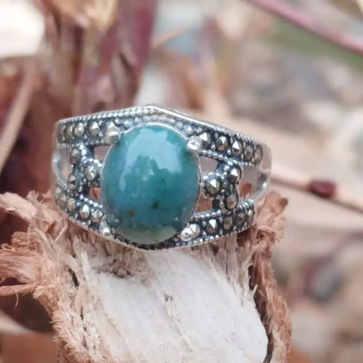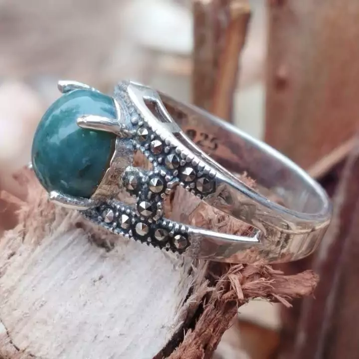 انگشتر نقره زنانه با نگین مارکازیت و عقیق سبز صددرصد طبیعی با تضمین مکتوب اصالت .برند دُرسیم
