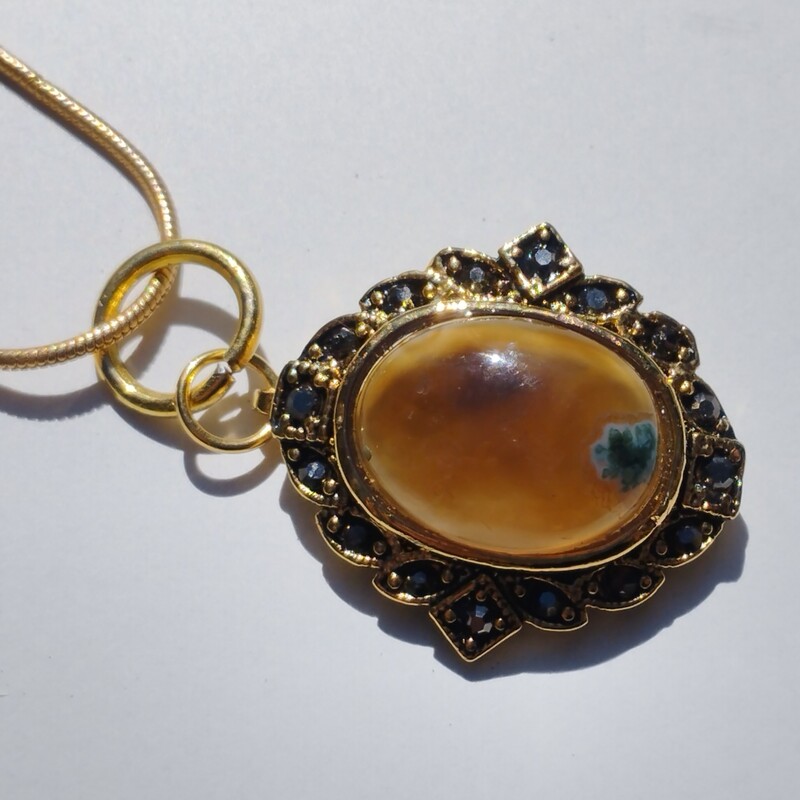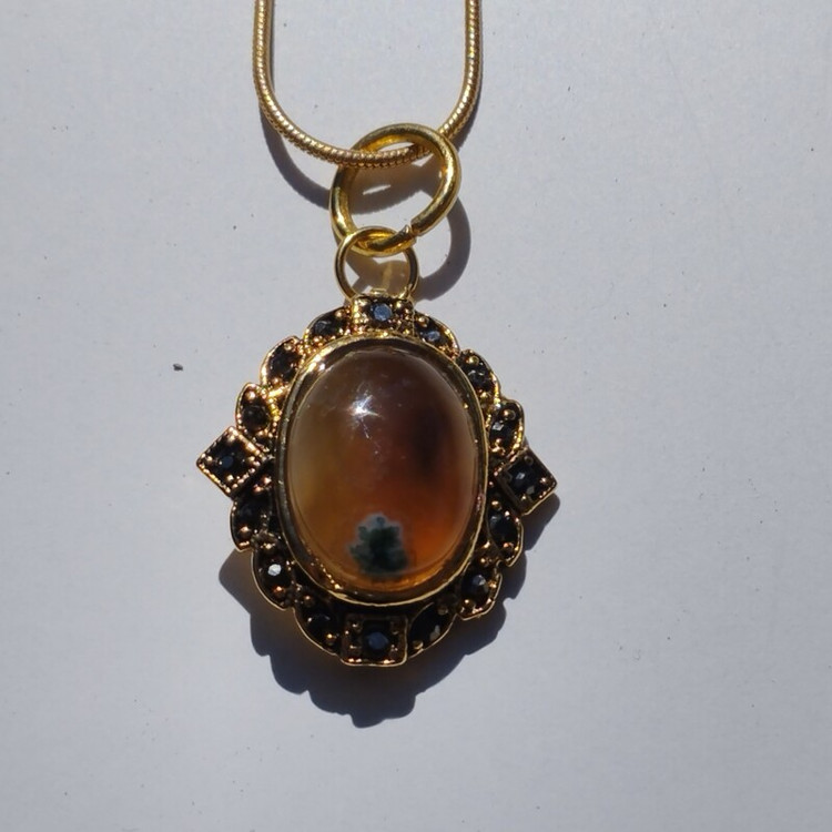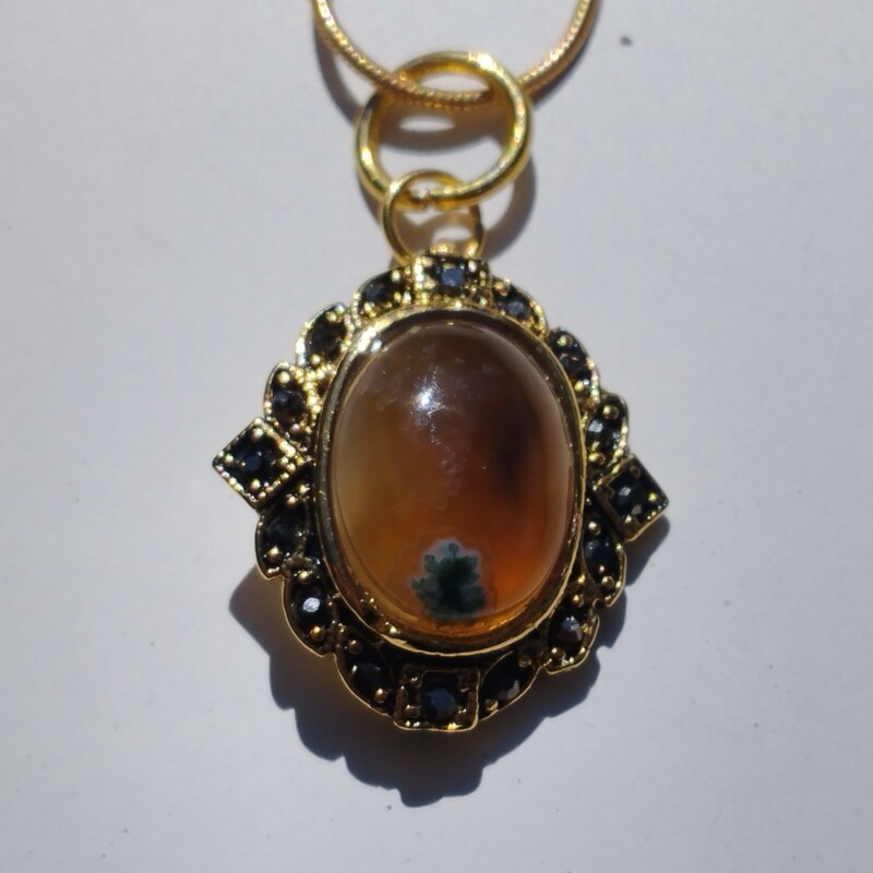 آویز عقیق فرم استیل رنگ ثابت با نگین خرمایی و مینی شجر سبز زیبا طبیعی و معدنی