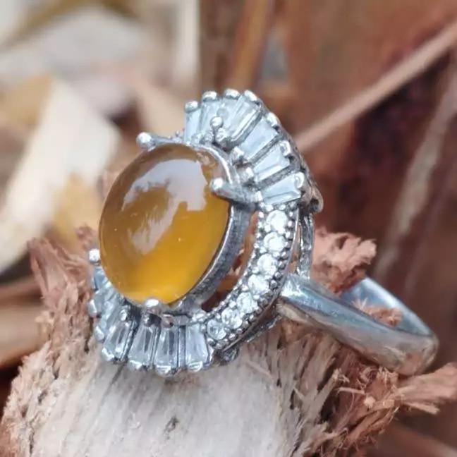 انگشتر نقره زنانه با نگین اتمی و آبکاری رادیوم .عقیق زرد عسلی صددرصد طبیعی .با ضمانت اصالت .برند دُرسیم