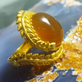 🟡 #انگشتر #زنانه 💎 #عقیقِ طبیعی عسلی آبدار ، بسیار نفیس و خوشرنگ 🌸🌹🌼💐 ✅ فرم : #نقره طرح خوشه گندم، عیار ۹۲۵ با آبکاری طلا.سایز ۵۲