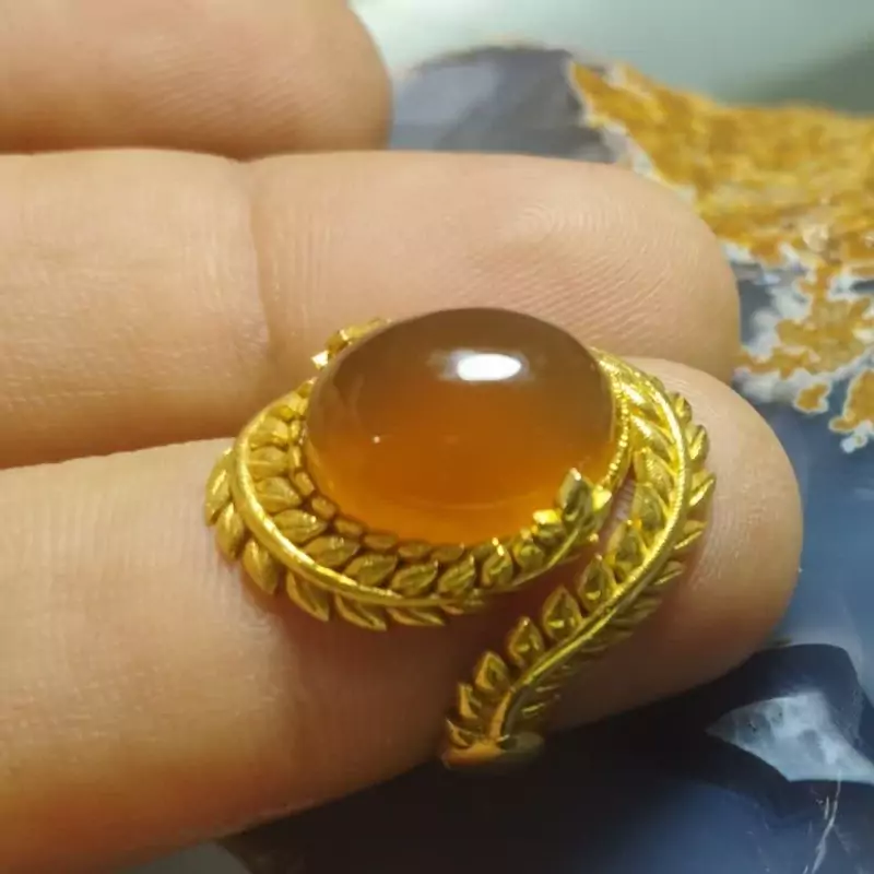 🟡 #انگشتر #زنانه 💎 #عقیقِ طبیعی عسلی آبدار ، بسیار نفیس و خوشرنگ 🌸🌹🌼💐 ✅ فرم : #نقره طرح خوشه گندم، عیار ۹۲۵ با آبکاری طلا.سایز ۵۲