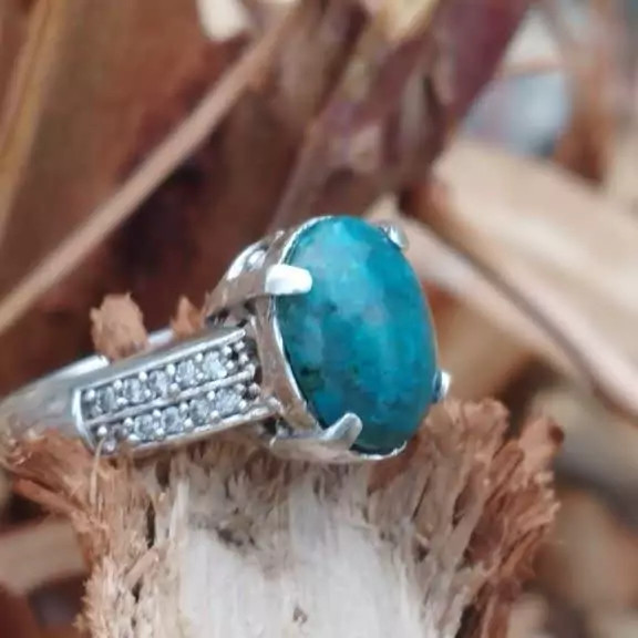 انگشتر نقره زنانه با نگین های اتمی و عقیق آبی فیروزه ای خاص و کمیاب با ضمانت نامه مکتوب اصالت .برند دُرسیم