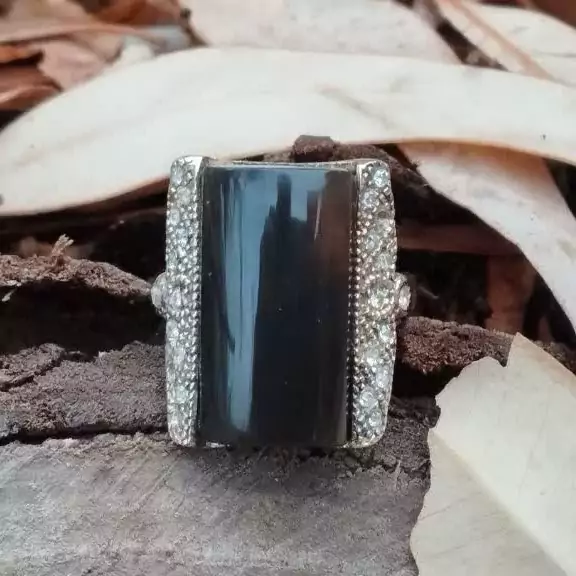 انگشتر نقره زنانه نگین دار با عقیق مشکی طبیعی .ضمانت مکتوب اصالت.برند دُرسیم