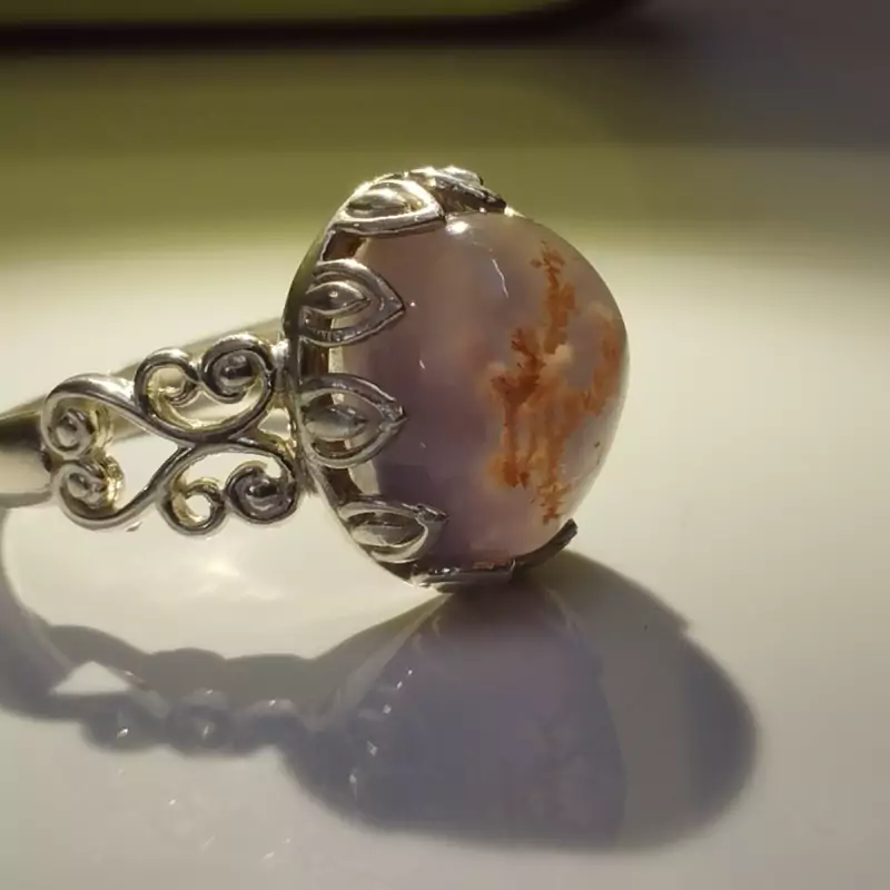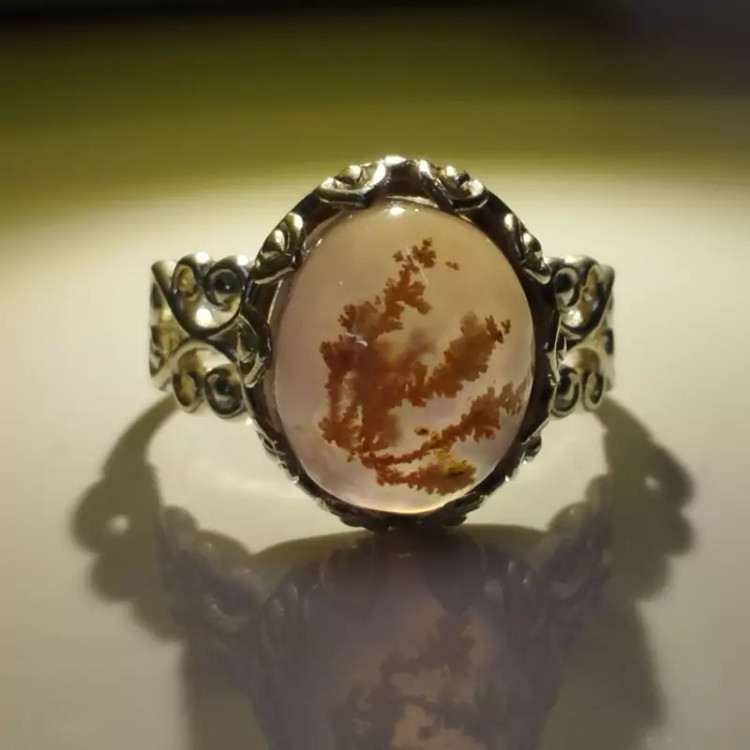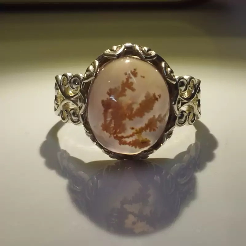 انگشتر نقره زنانه عقیق شجر خاص و بی نظیر در زمینه سوسنی ،صددرصد طبیعی و معدنی با ضمانت مکتوب اصالت سنگ.برند دُرسیم