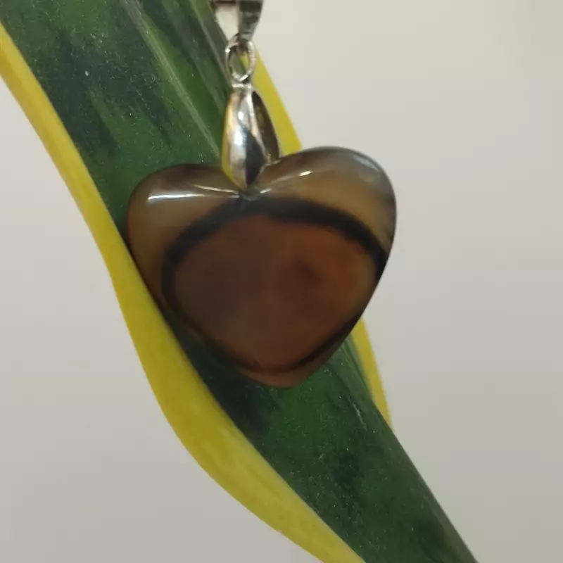 آویز زنانه با چنگ استیل ،عقیق خرمایی با هاله مشکی،تراش قلب حرفه ای،صددرصد طبیعی با ضمانت متولد اصالت.برند دُرسیم
