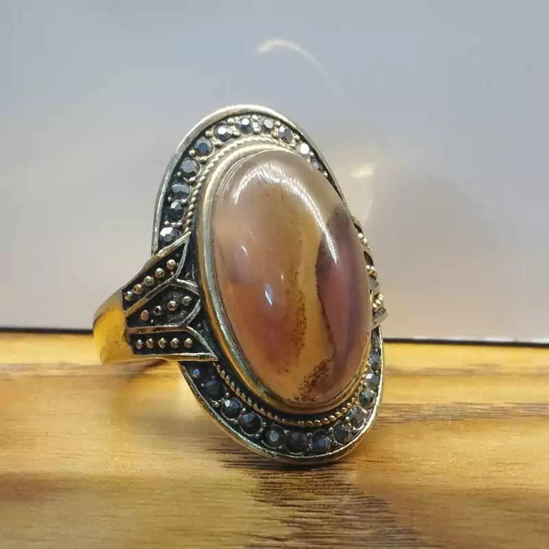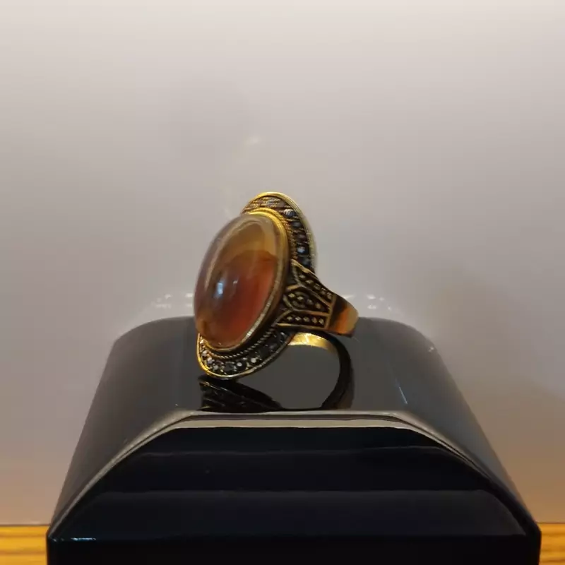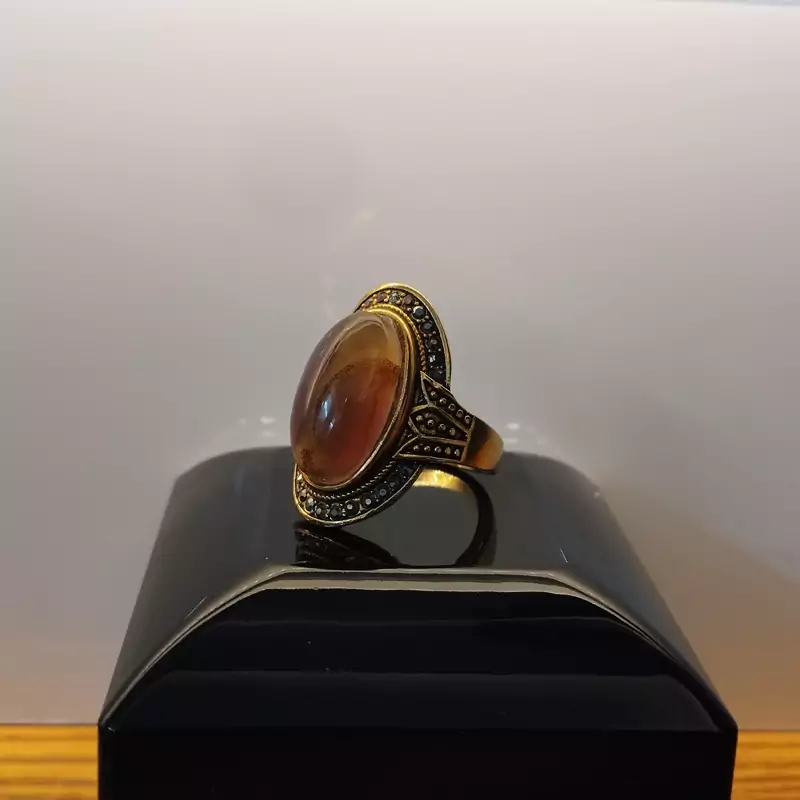 انگشتر استیل رنگ ثابت زنانه عقیق دو رنگ زرد و سوسنی صددرصد طبیعی با تضمین مکتوب اصالت.برند دُرسیم