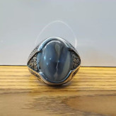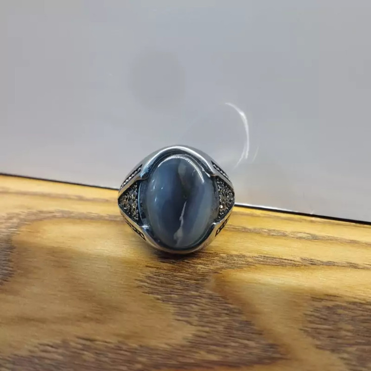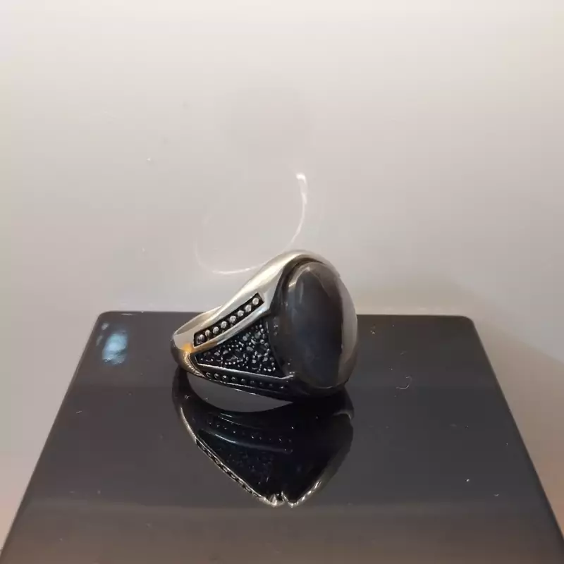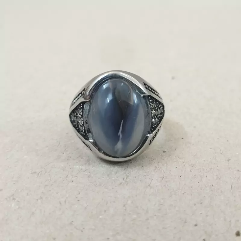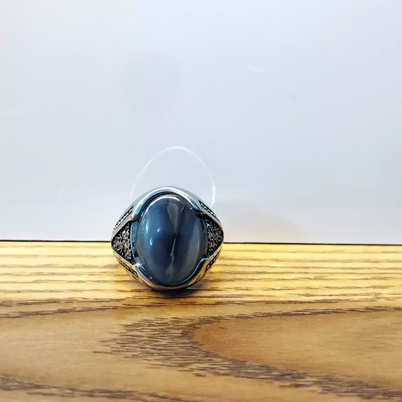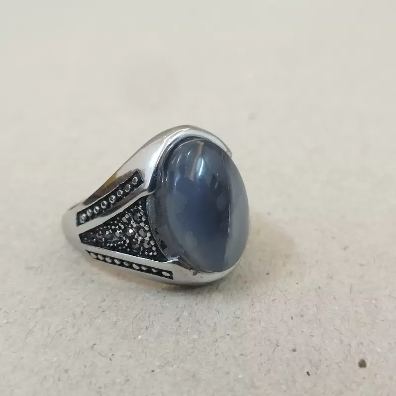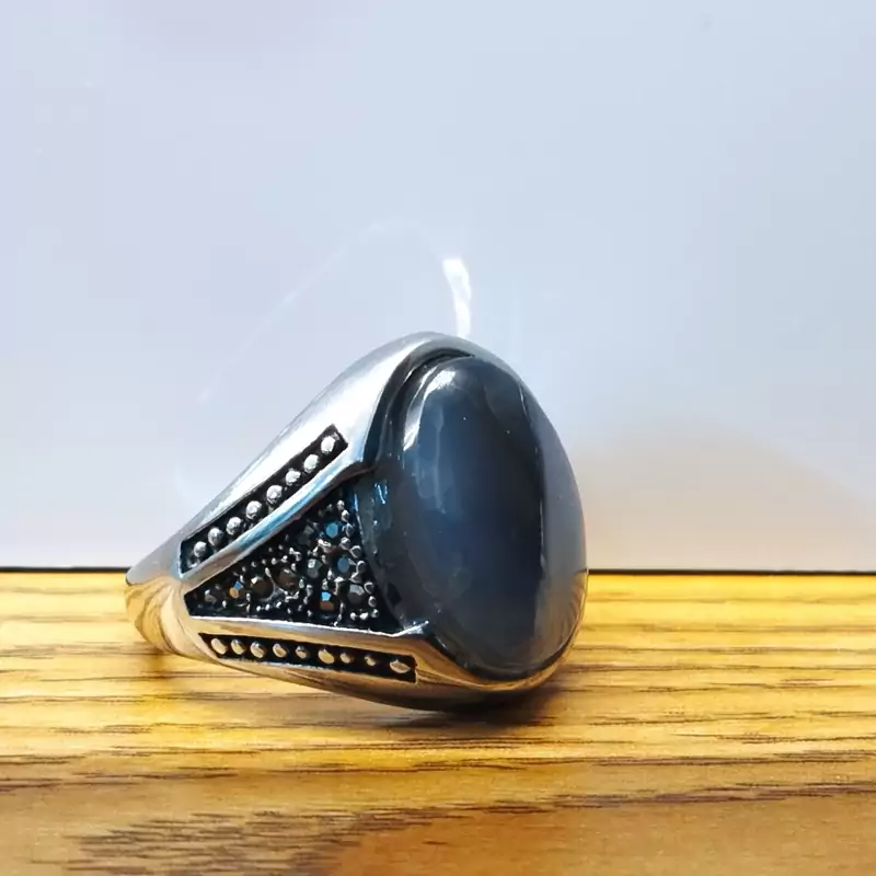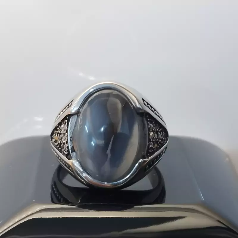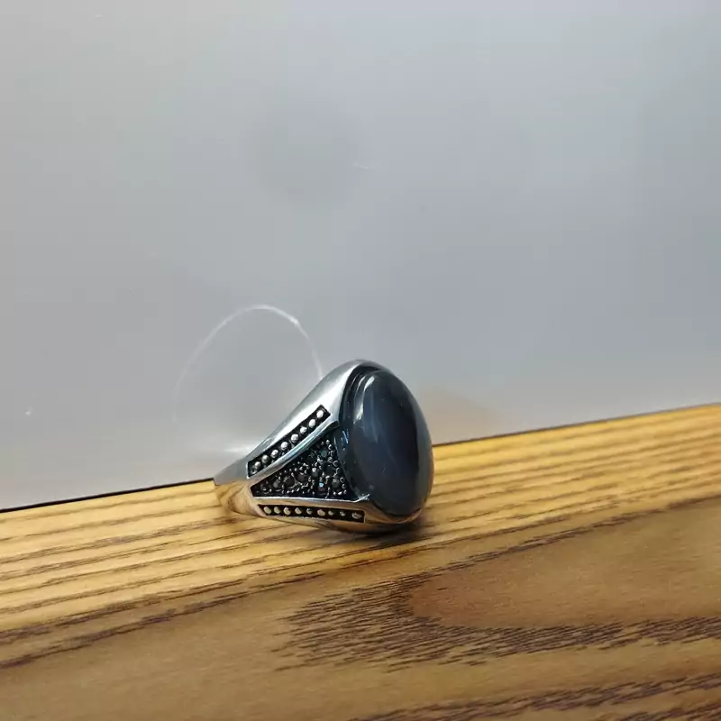 انگشتر استیل رنگ ثابت مردانه عقیق دو رنگ سفید ،دودی با تضمین مکتوب اصالت،برند دُرسیم