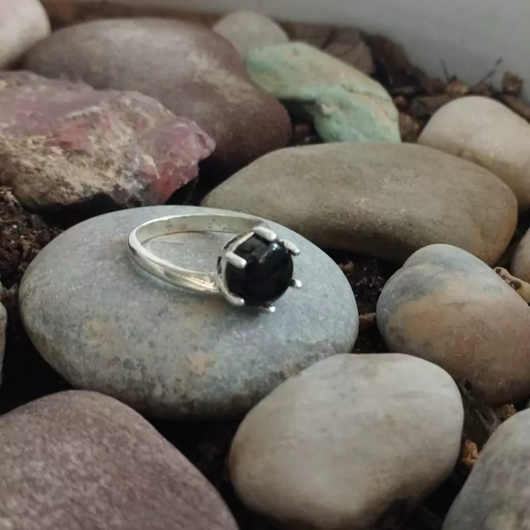 انگشتر نقره زنانه عقیق مشکی صددرصد طبیعی با ضمانت مکتوب اصالت .برند دُرسیم