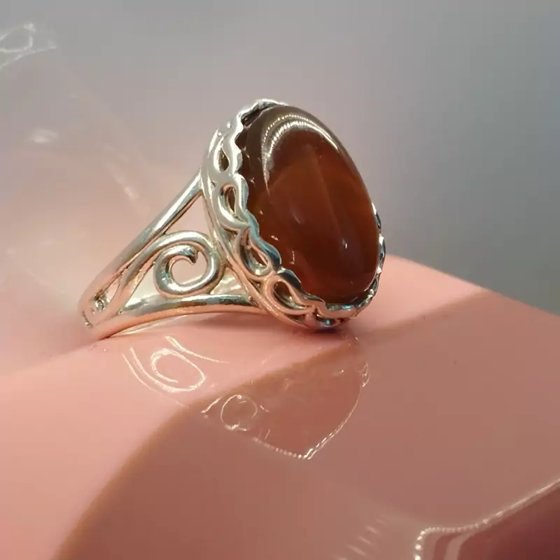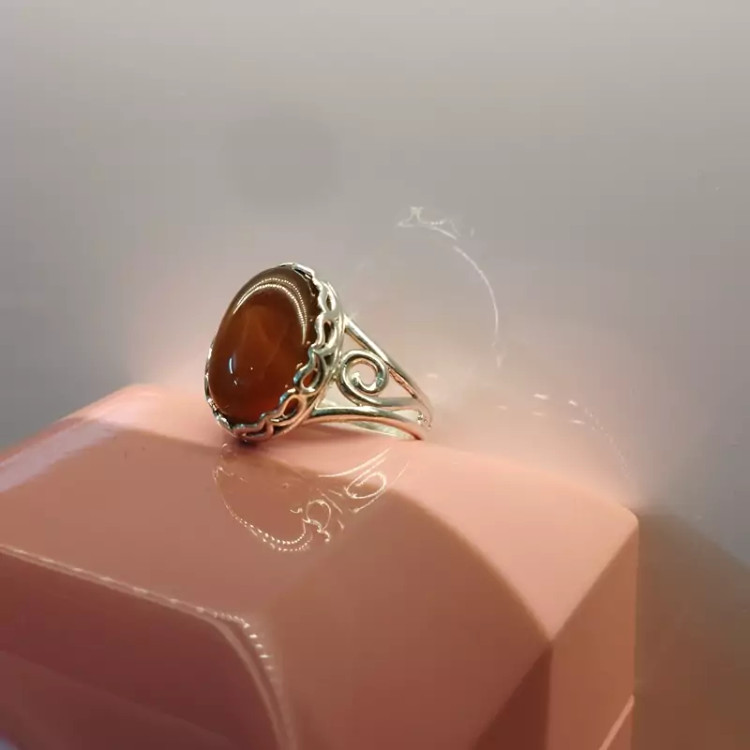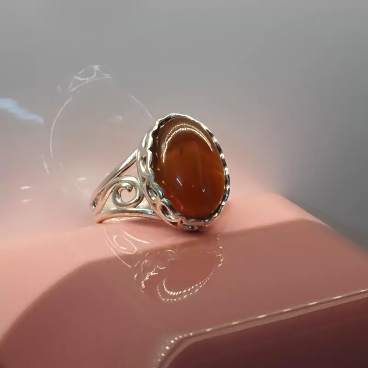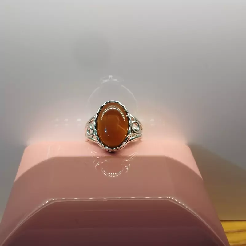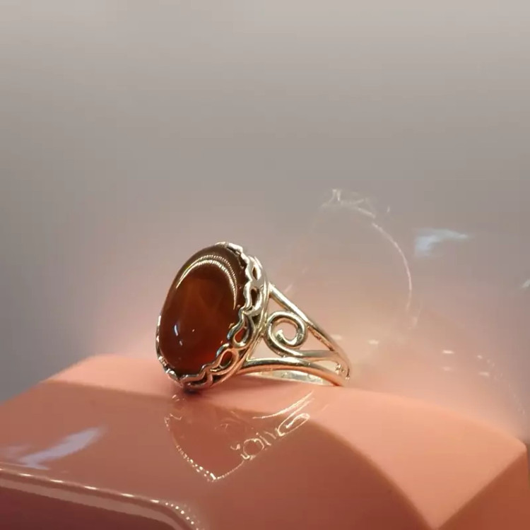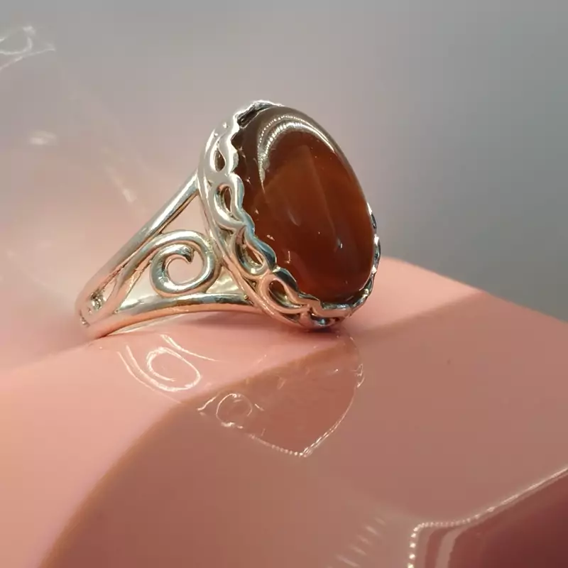 انگشتر نقره زنانه عقیق خرمایی صددرصد طبیعی با تضمین مکتوب اصالت.برند دُرسیم