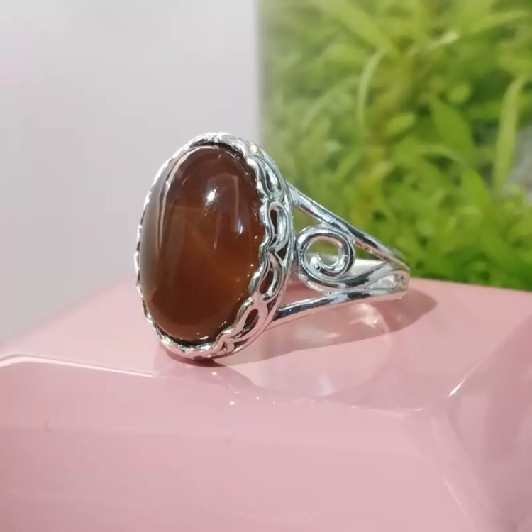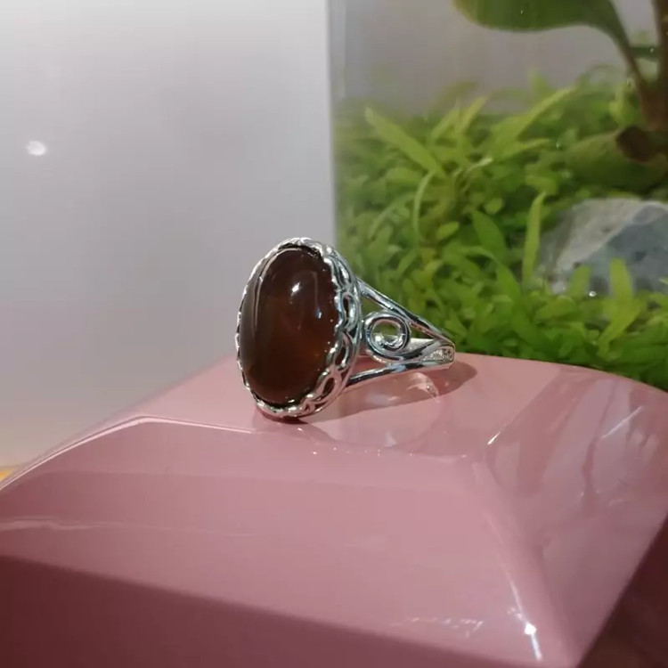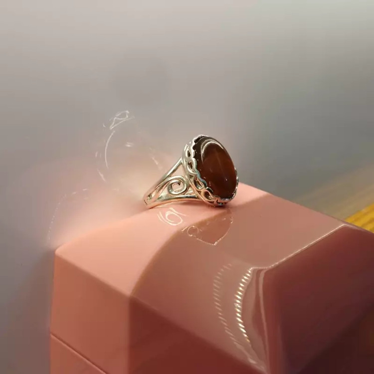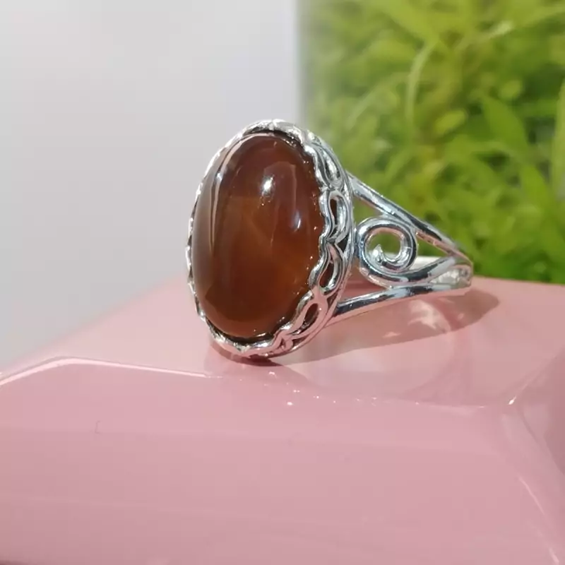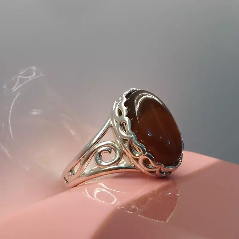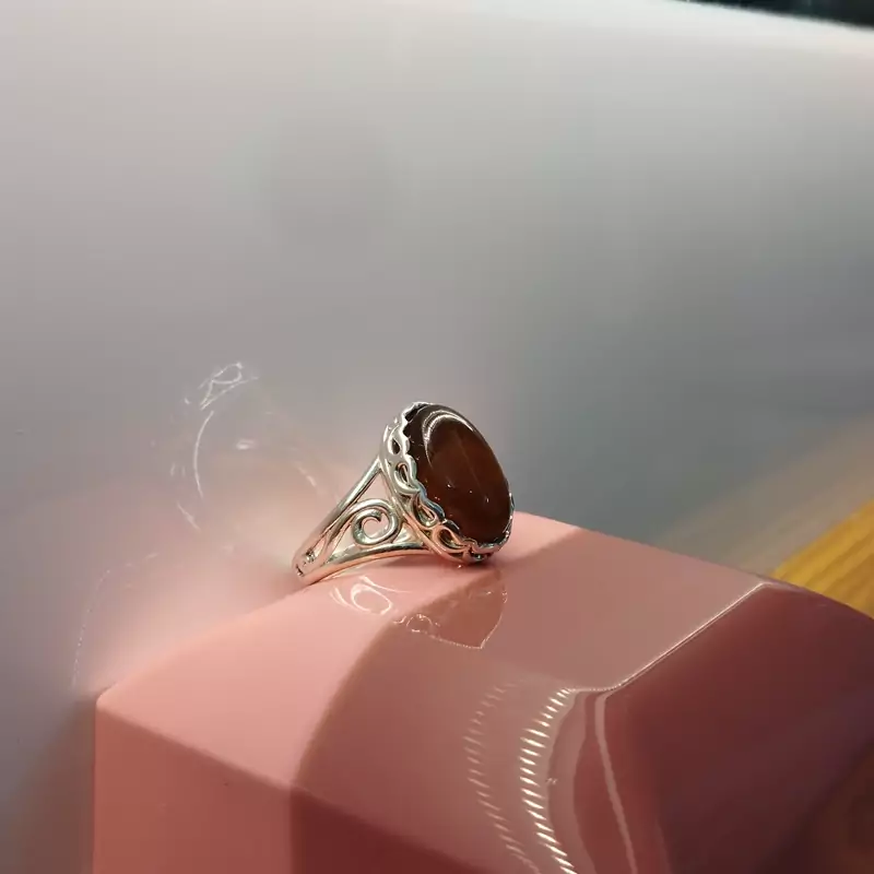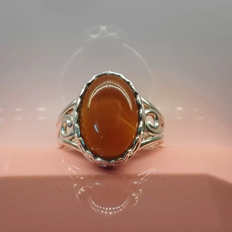 انگشتر نقره زنانه عقیق خرمایی صددرصد طبیعی با تضمین مکتوب اصالت.برند دُرسیم