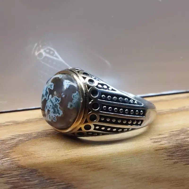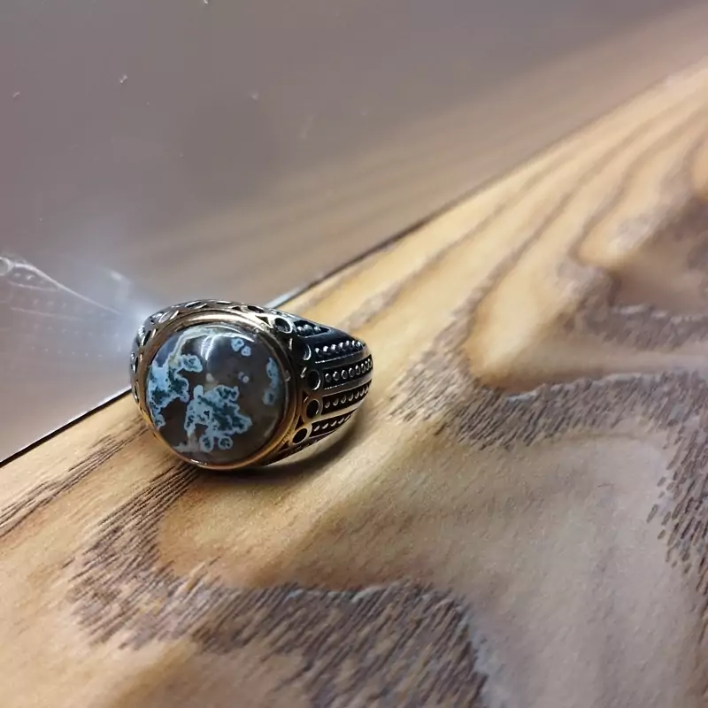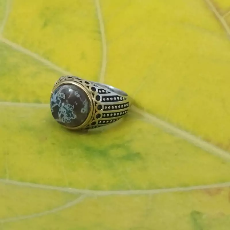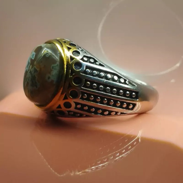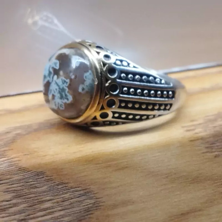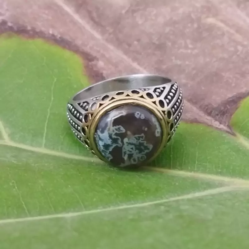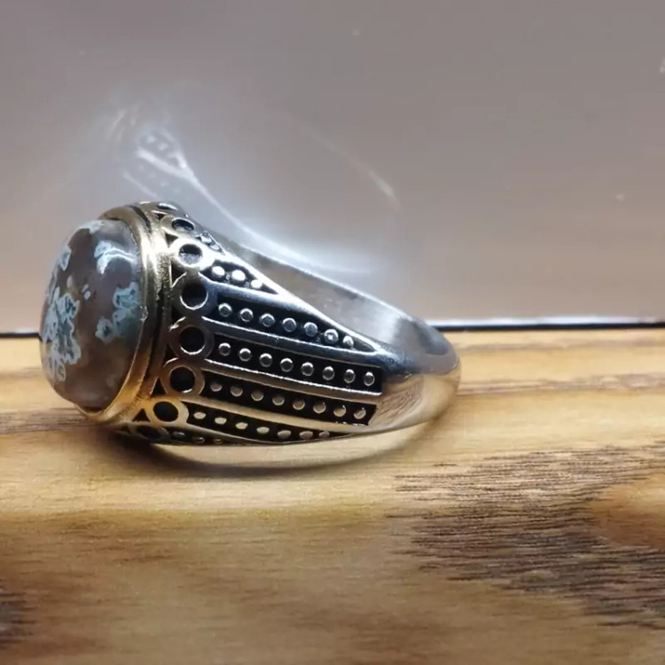 انگشتر استیل مردانه عقیق منظره ای صددرصد طبیعی با ضمانت مکتوب اصالت ،برند دُرسیم