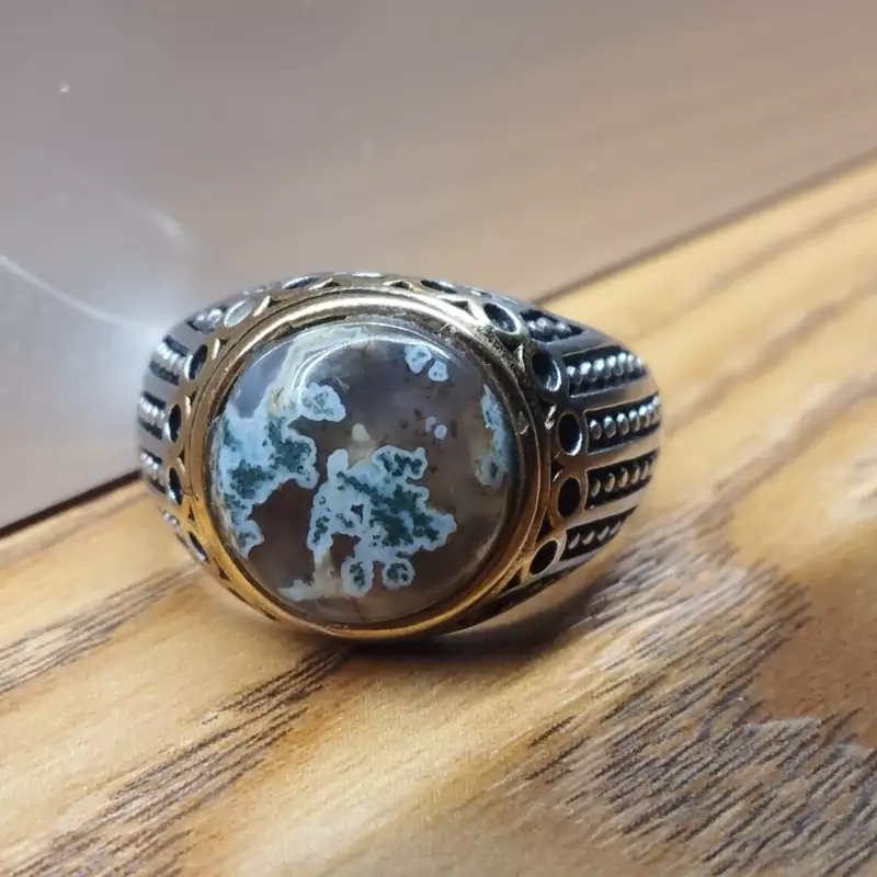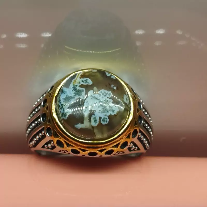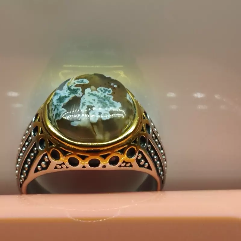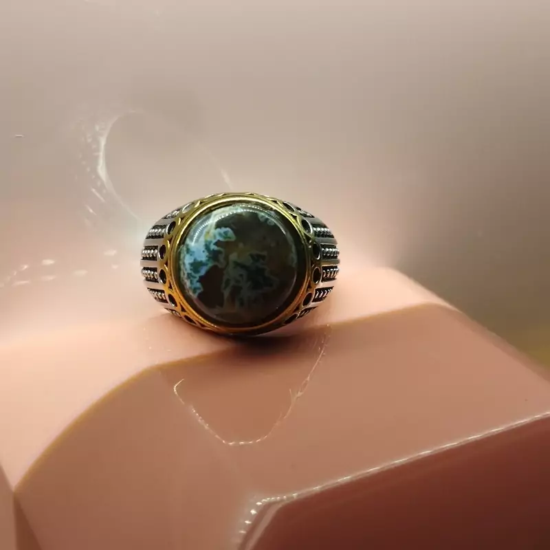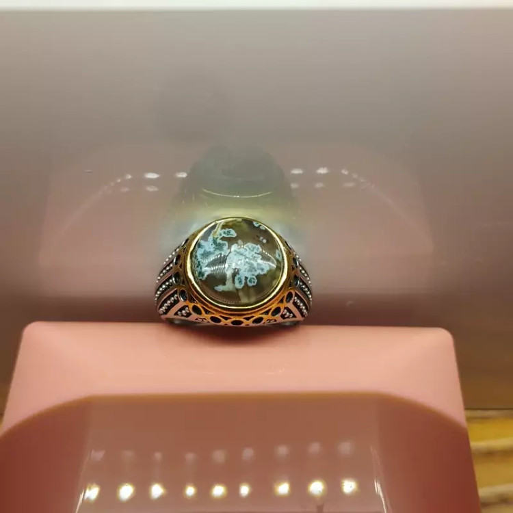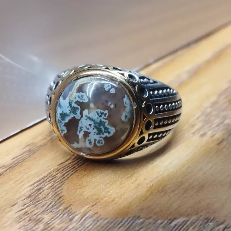 انگشتر استیل مردانه عقیق منظره ای صددرصد طبیعی با ضمانت مکتوب اصالت ،برند دُرسیم