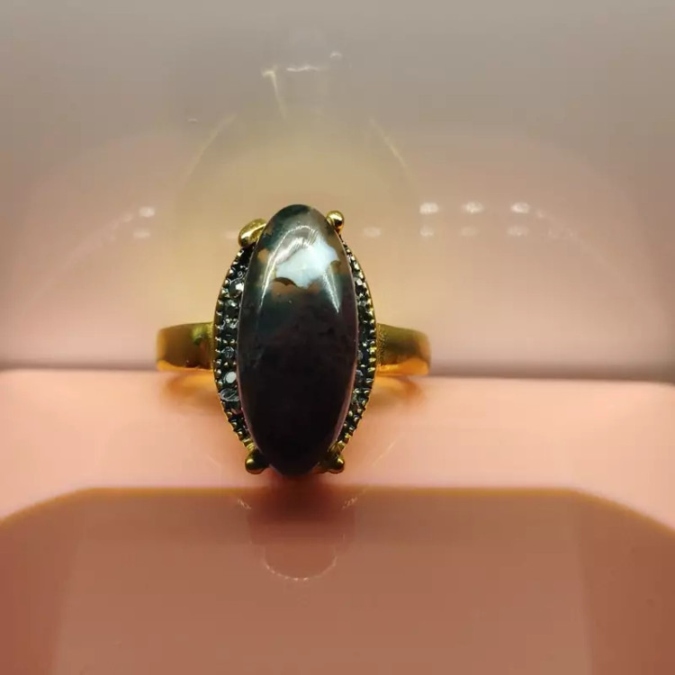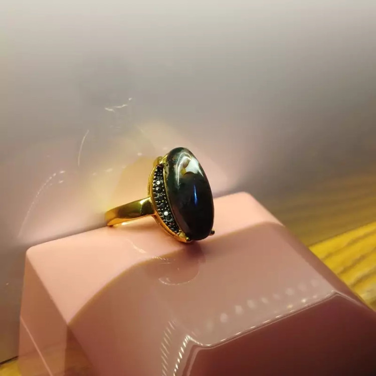 انگشتر استیل زنانه رنگ ثابت عقیق خزه ای زرشکی و سبز صددرصد طبیعی و معدنی با ضمانت مکتوب اصالت ،برند دُرسیم