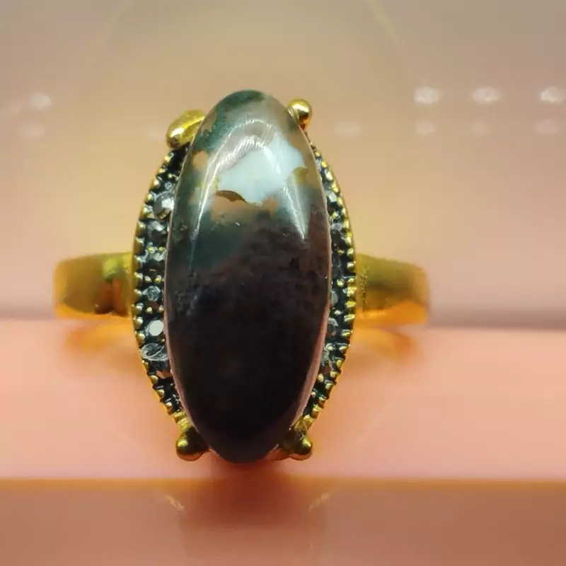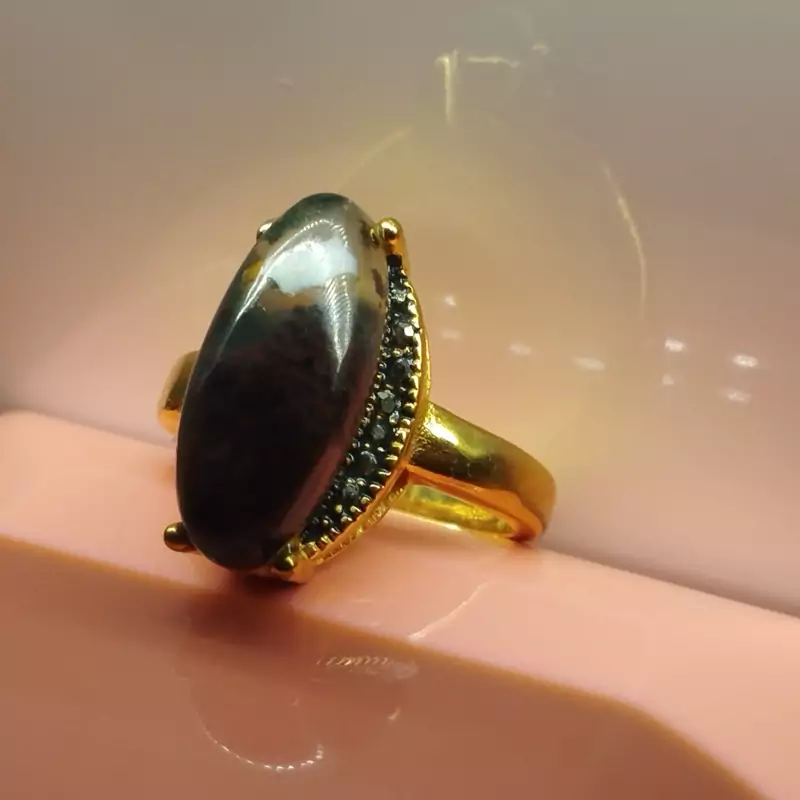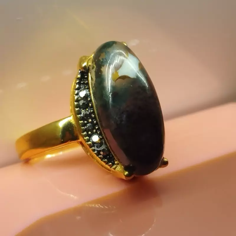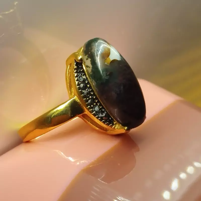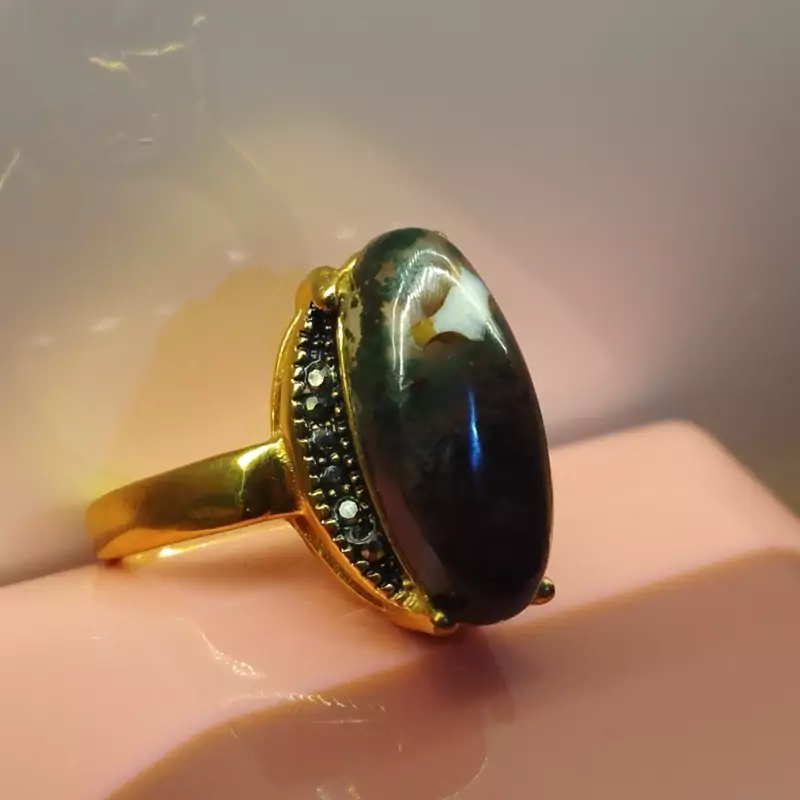 انگشتر استیل زنانه رنگ ثابت عقیق خزه ای زرشکی و سبز صددرصد طبیعی و معدنی با ضمانت مکتوب اصالت ،برند دُرسیم