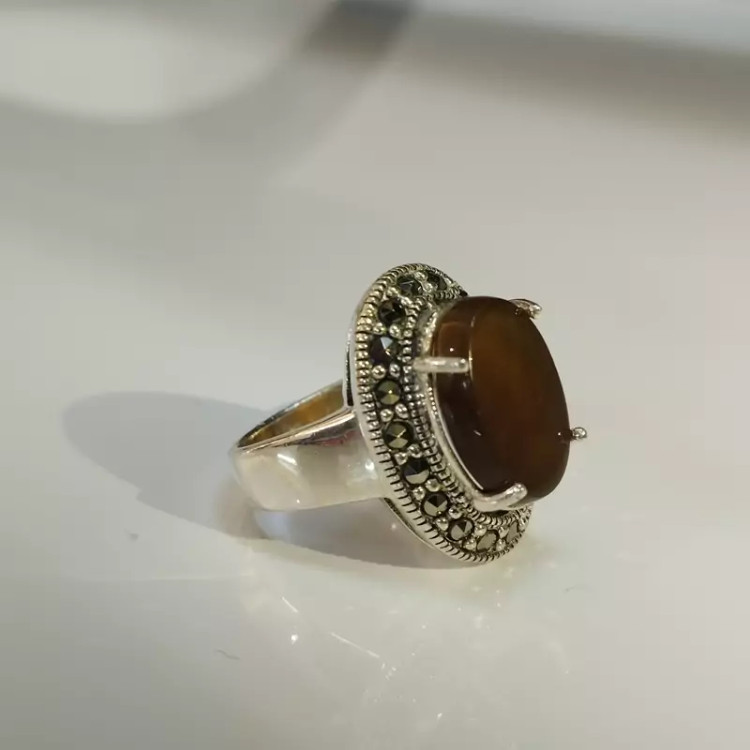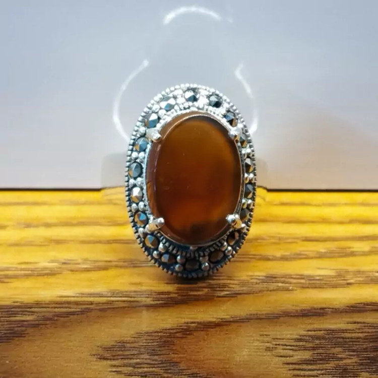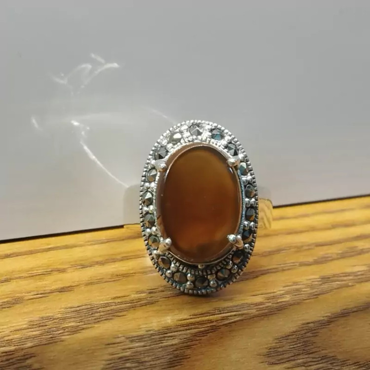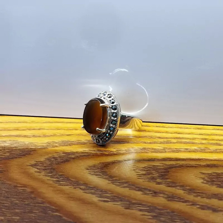 انگشتر نقره زنانه با نگین مارکازیت ،عقیق خرمایی صددرصد طبیعی با ضمانت مکتوب اصالت،برند دُرسیم