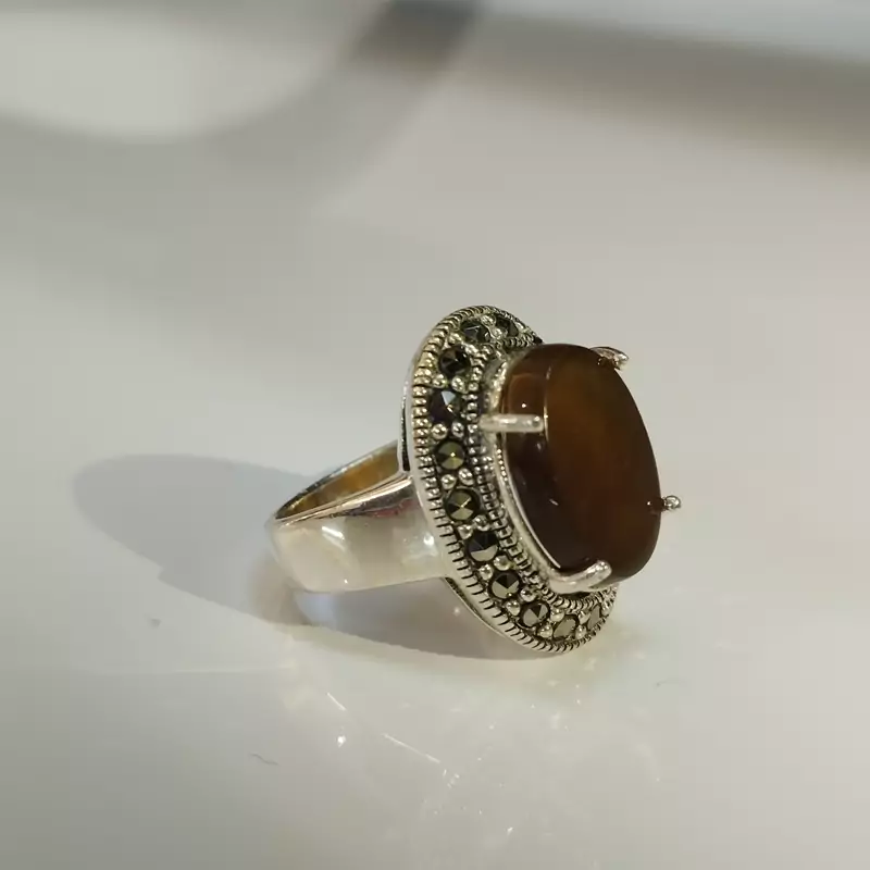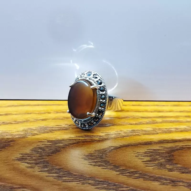 انگشتر نقره زنانه با نگین مارکازیت ،عقیق خرمایی صددرصد طبیعی با ضمانت مکتوب اصالت،برند دُرسیم