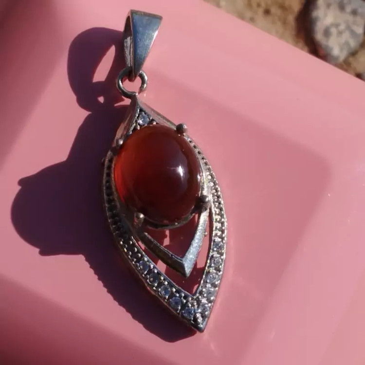 گردن آویز نقره نگین دار زنانه عقیق سرخ آبدار صددرصد طبیعی و معدنی با ضمانت مکتوب اصالت،برند دُرسیم