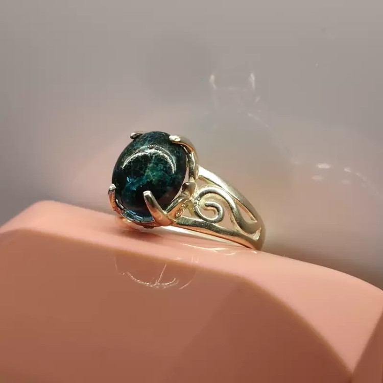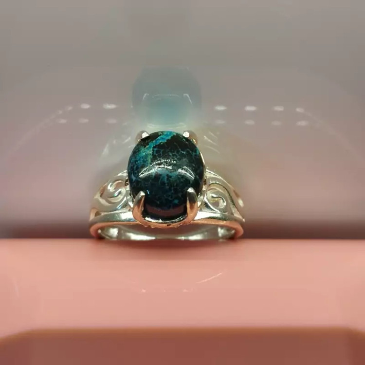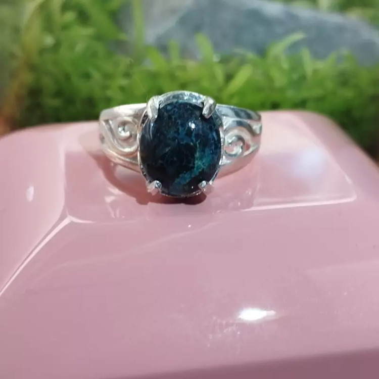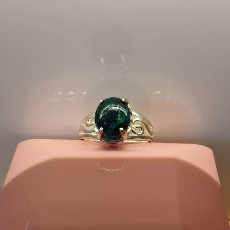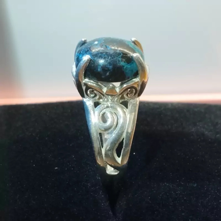 انگشتر نقره زنانه عقیق خاص آبی و مشکی فیروزه ای صددرصد طبیعی و معدنی با تضمین مکتوب اصالت،برند دُرسیم