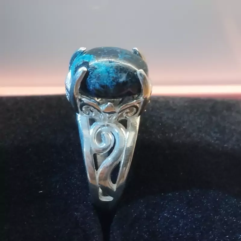انگشتر نقره زنانه عقیق خاص آبی و مشکی فیروزه ای صددرصد طبیعی و معدنی با تضمین مکتوب اصالت،برند دُرسیم