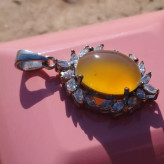 نیمست نقره نگین دار با آبکاری رادیوم،عقیق زرد آبدار (شرف شمس) صددرصد طبیعی با ضمانت مکتوب اصالت.برند دُرسیم