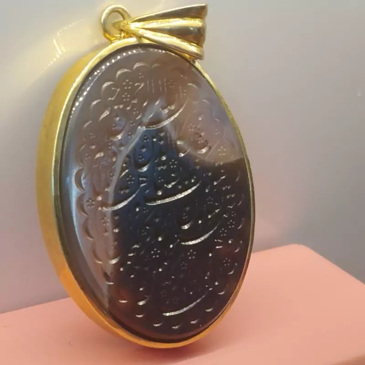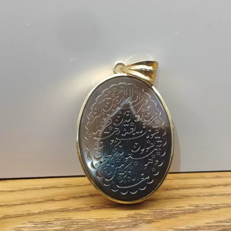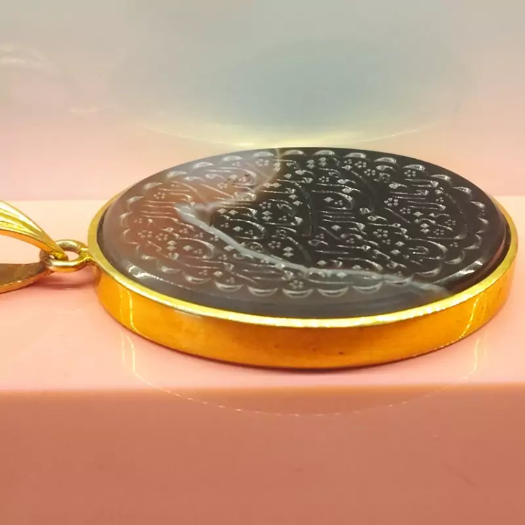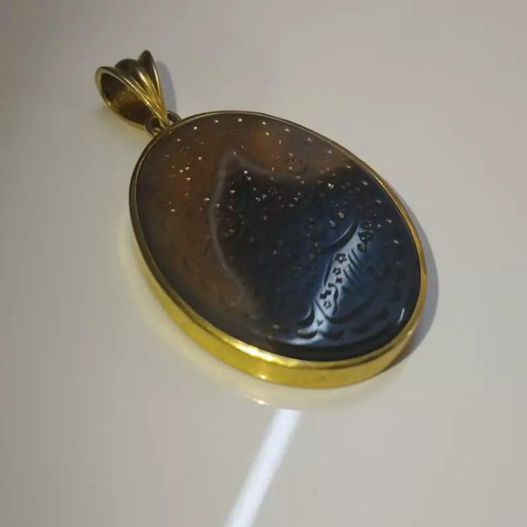 گردن آویز نقره زنانه با آبکاری ط ل ا عقیق دو رنگ صددرصد طبیعی، حکاکی آیه شریف ان یکاد ،با ضمانت مکتوب اصالت.برند دُرسیم